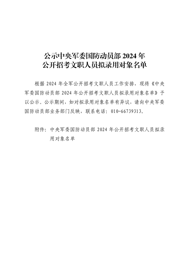 1.中央軍委國防動員部某單位2024年公開招考文職人員擬錄用對象名單