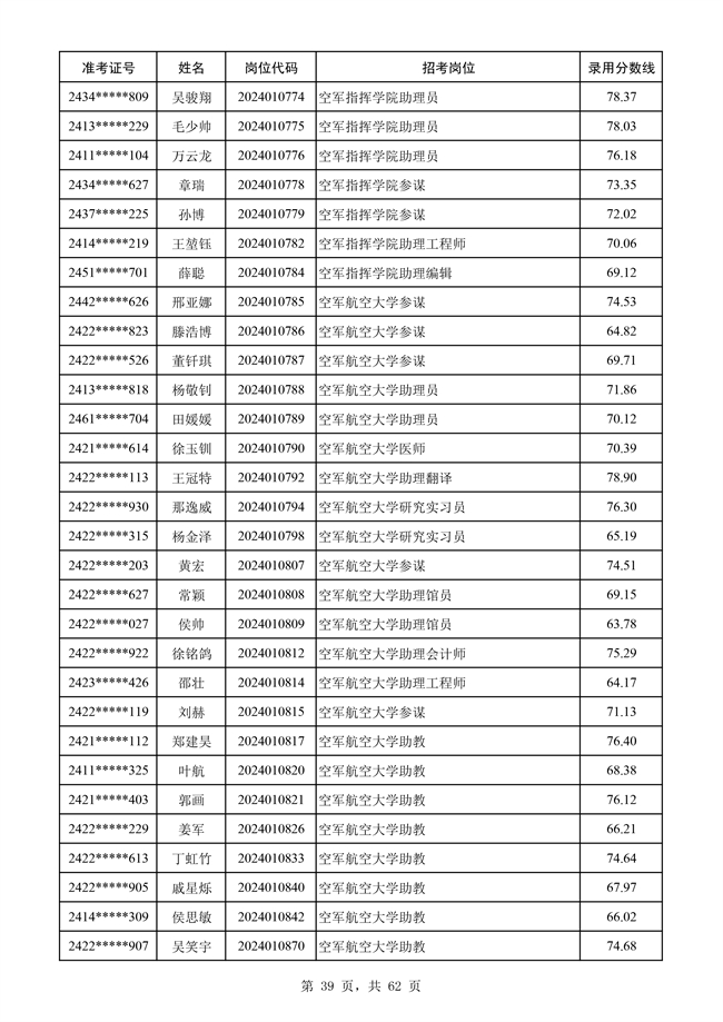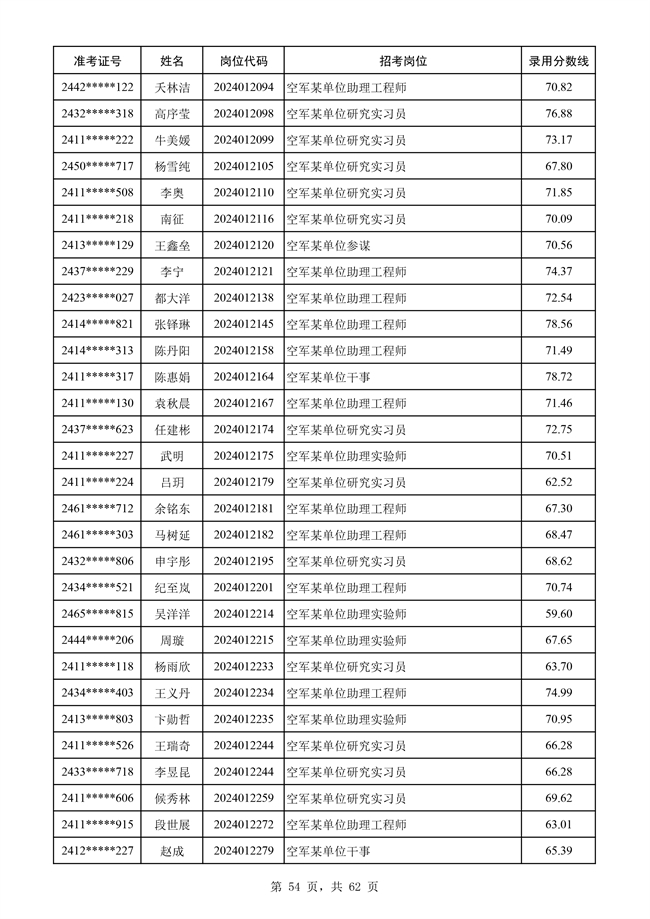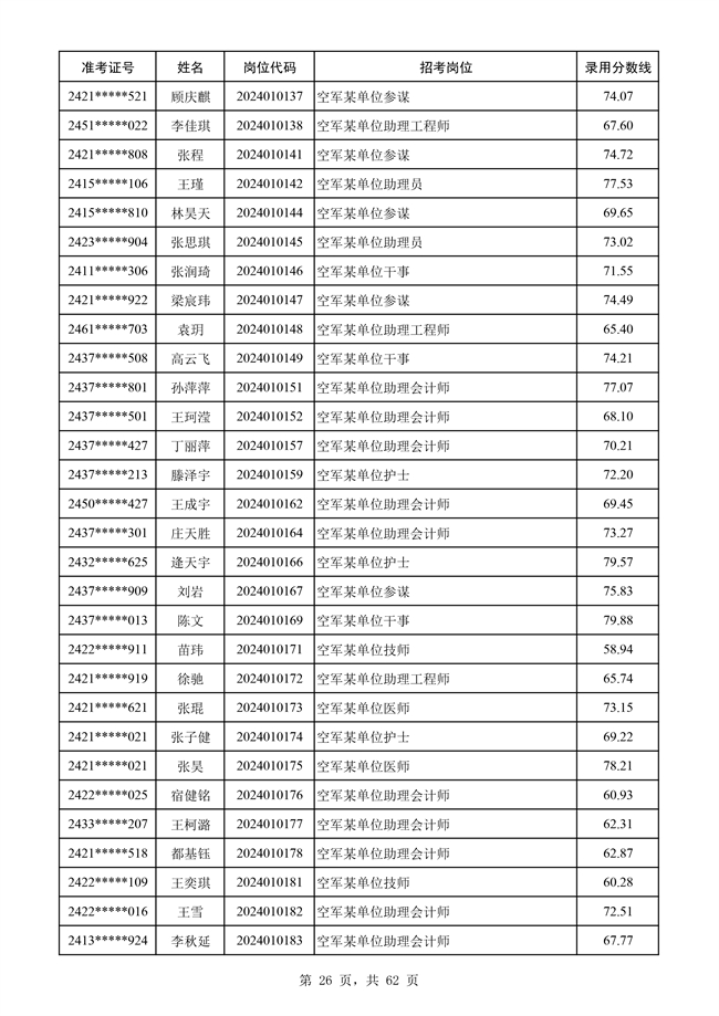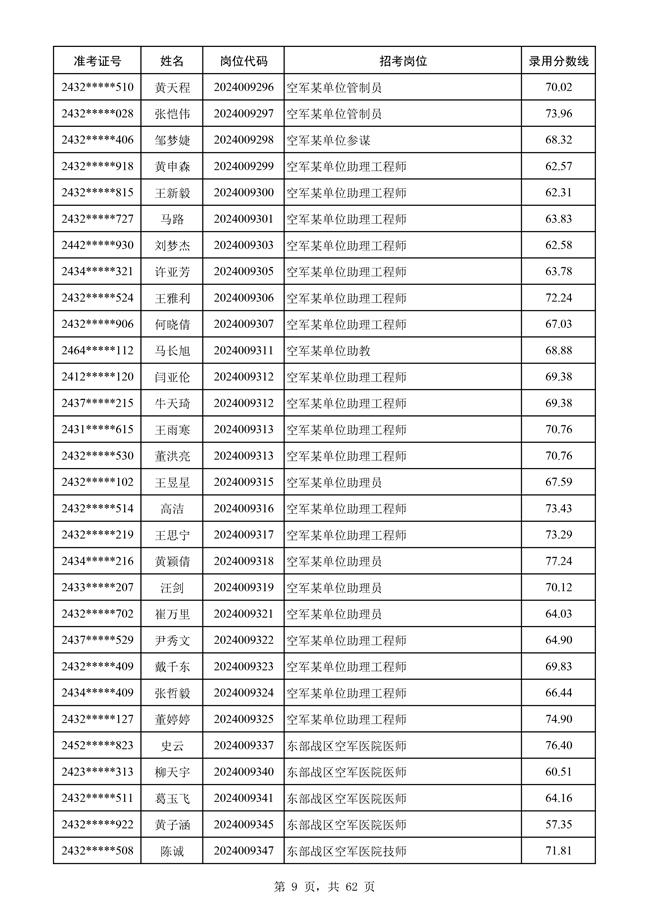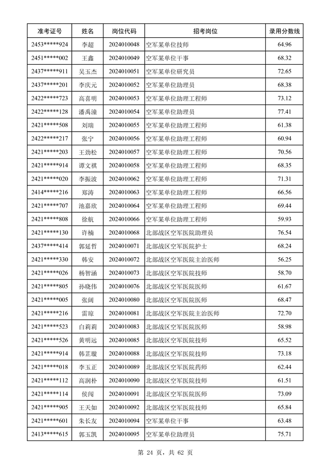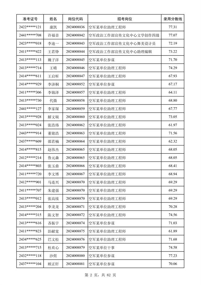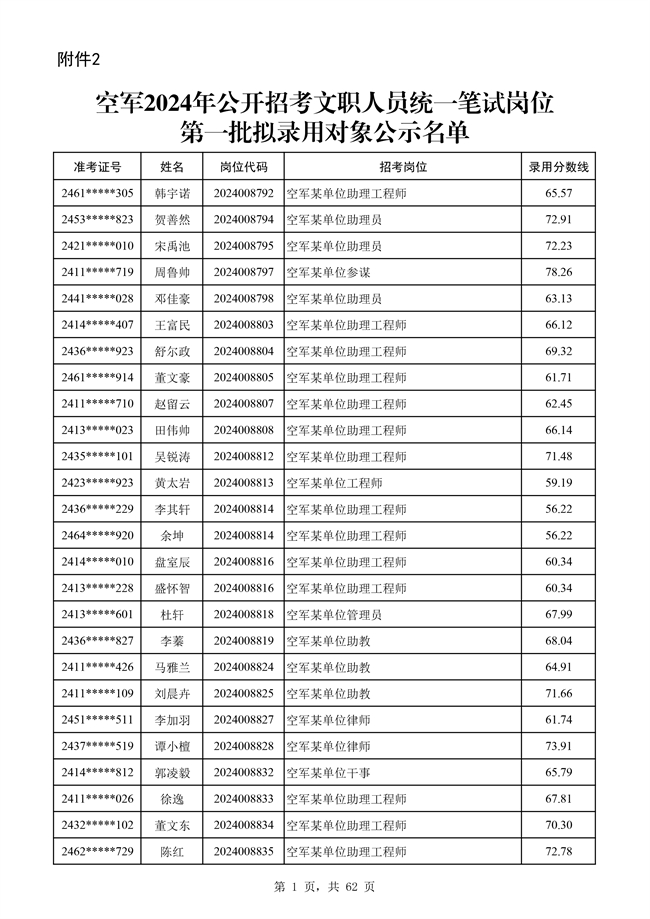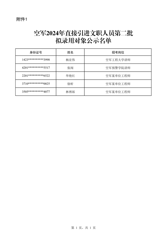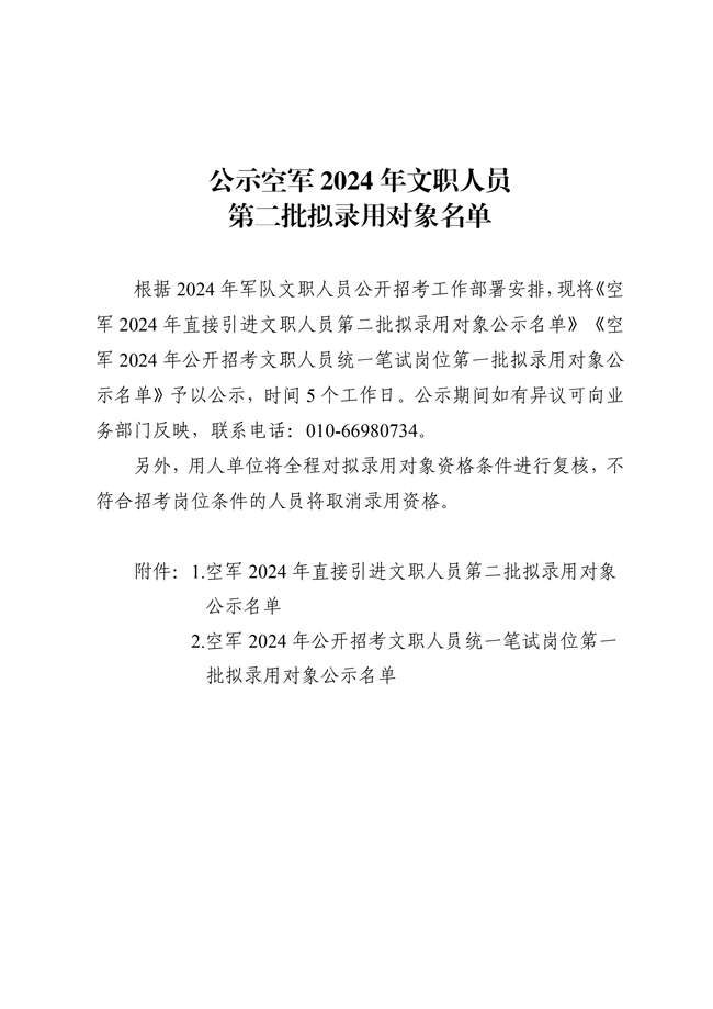 原文標題:公示空軍2024年文職人員第二批擬錄用對象名單