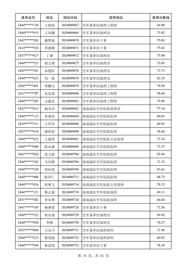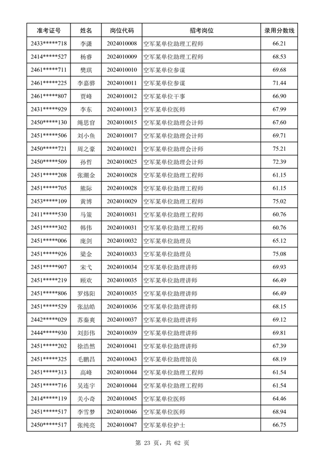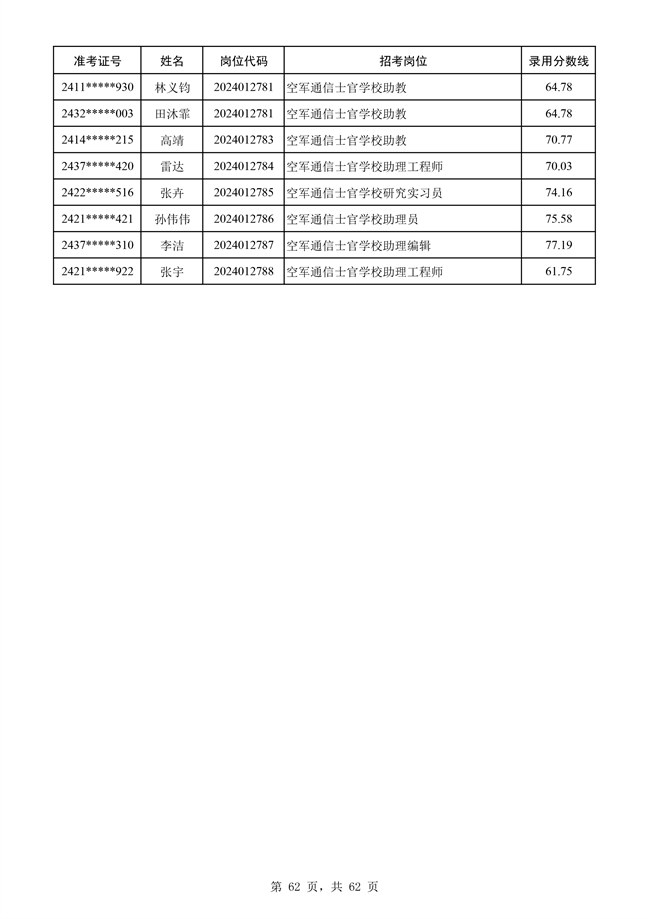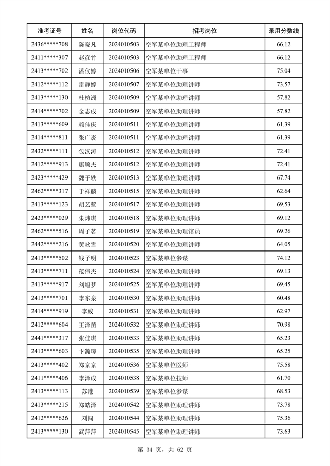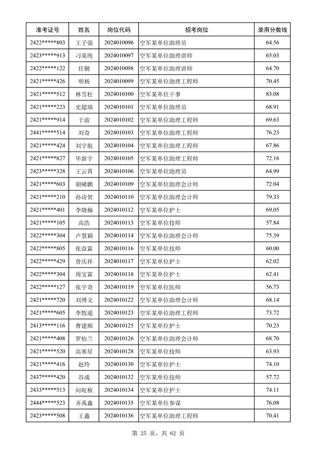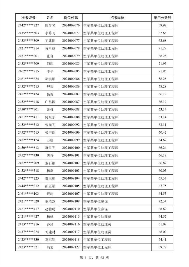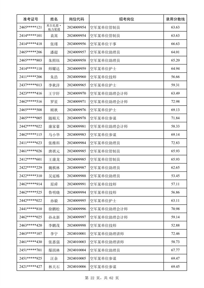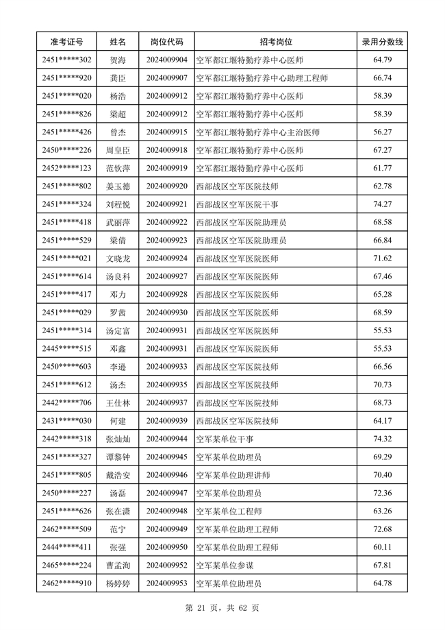 原文標題:公示空軍2024年文職人員第二批擬錄用對象名單