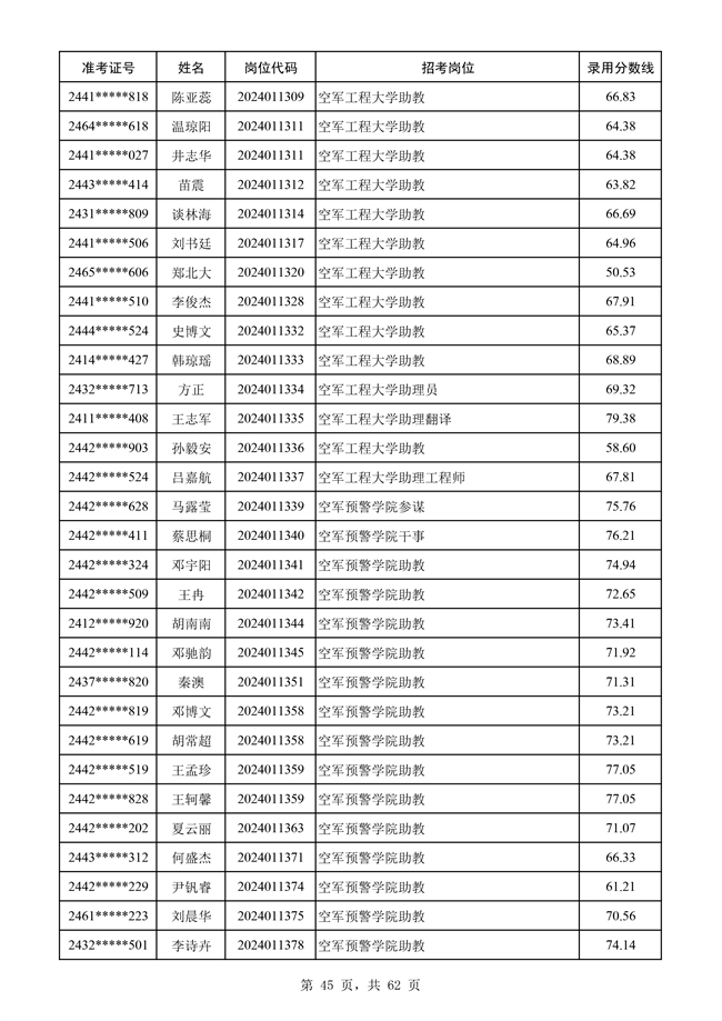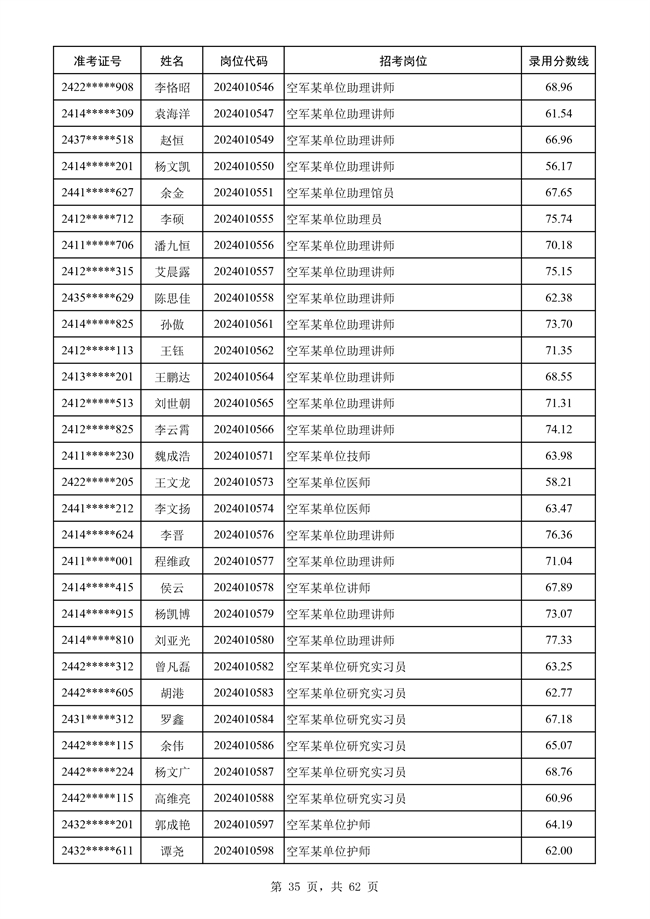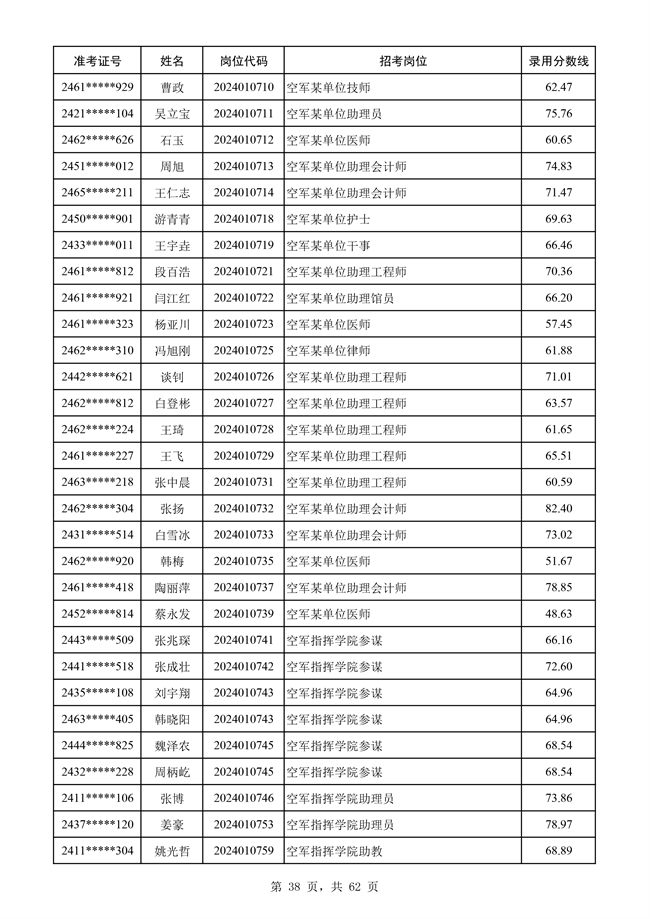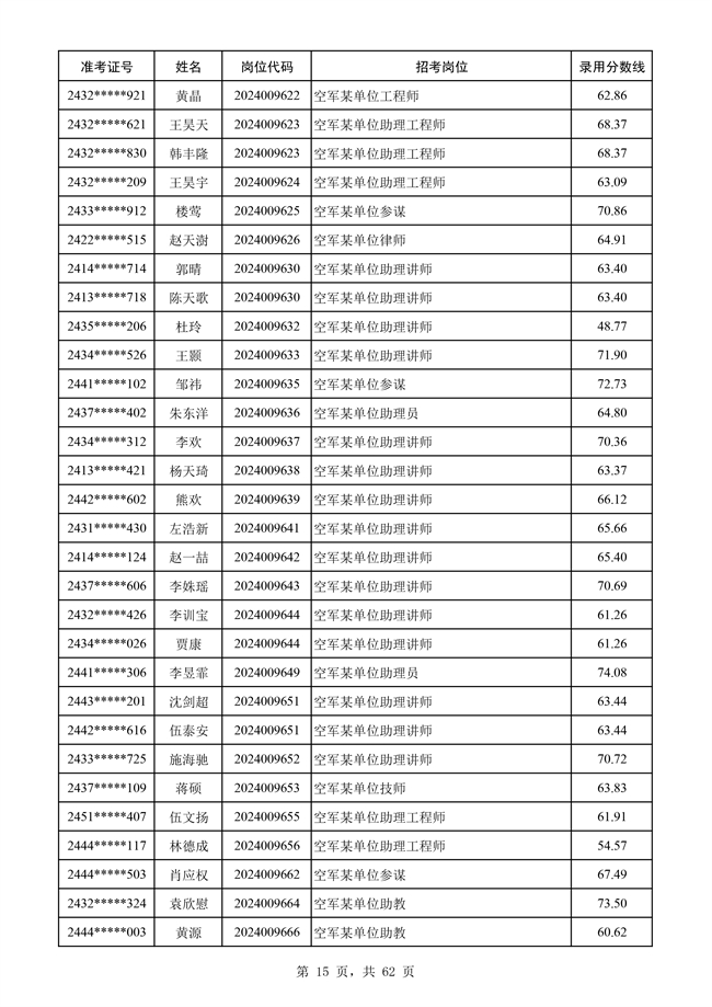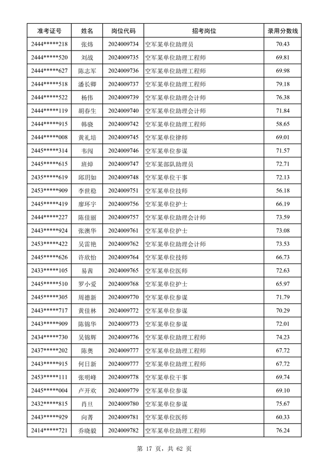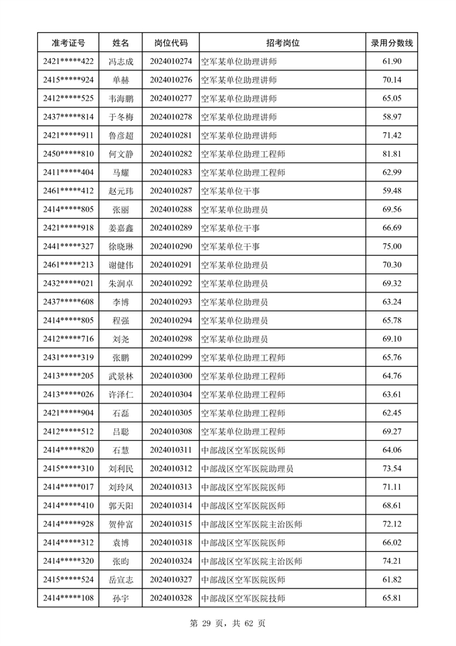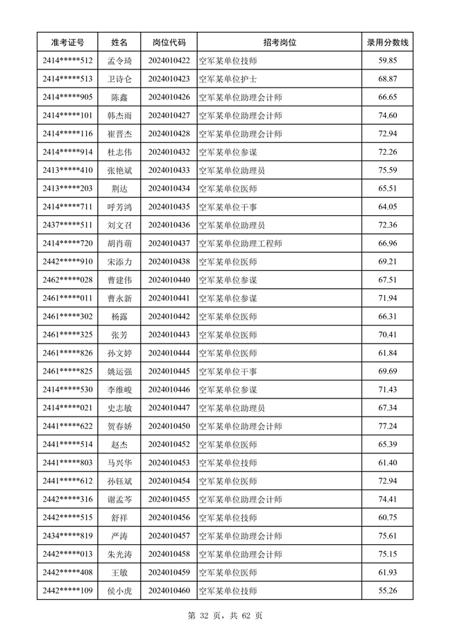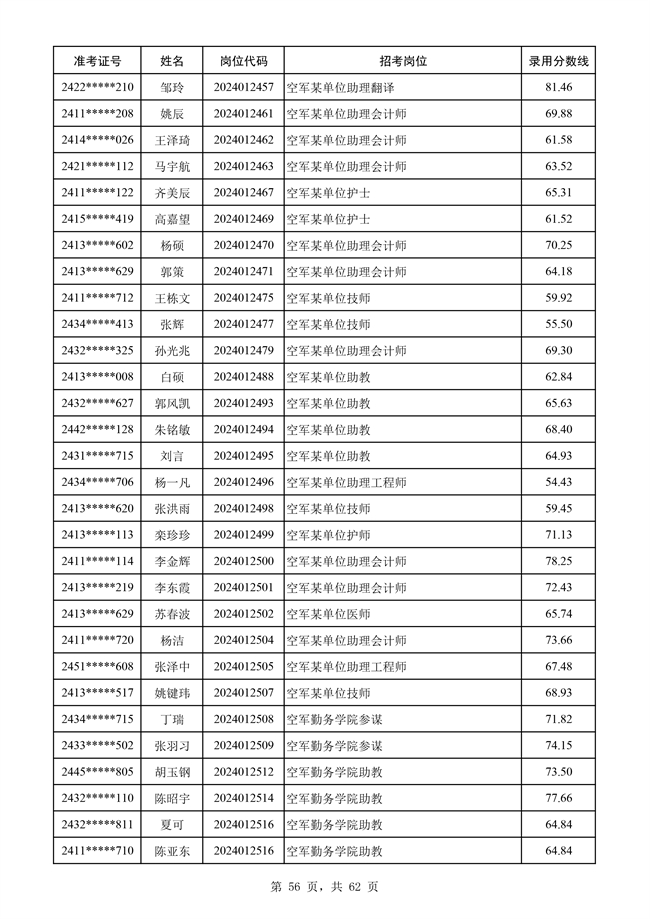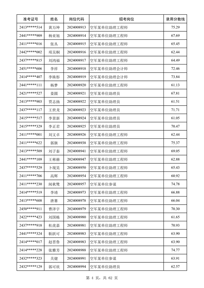 原文標題:公示空軍2024年文職人員第二批擬錄用對象名單