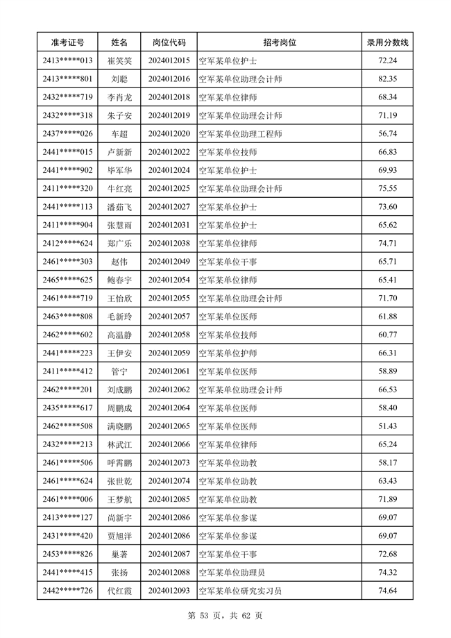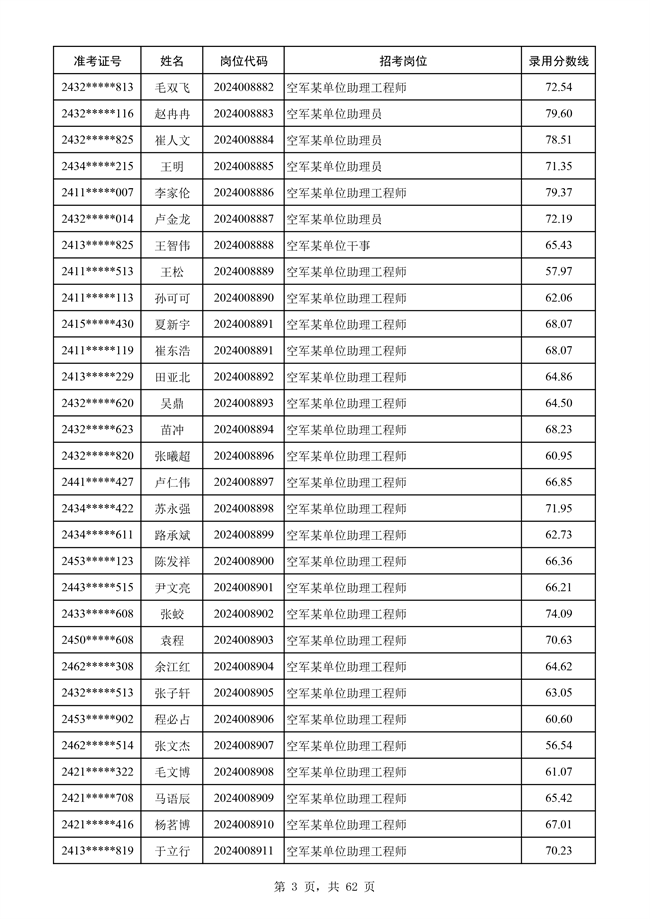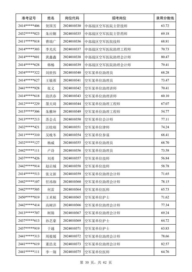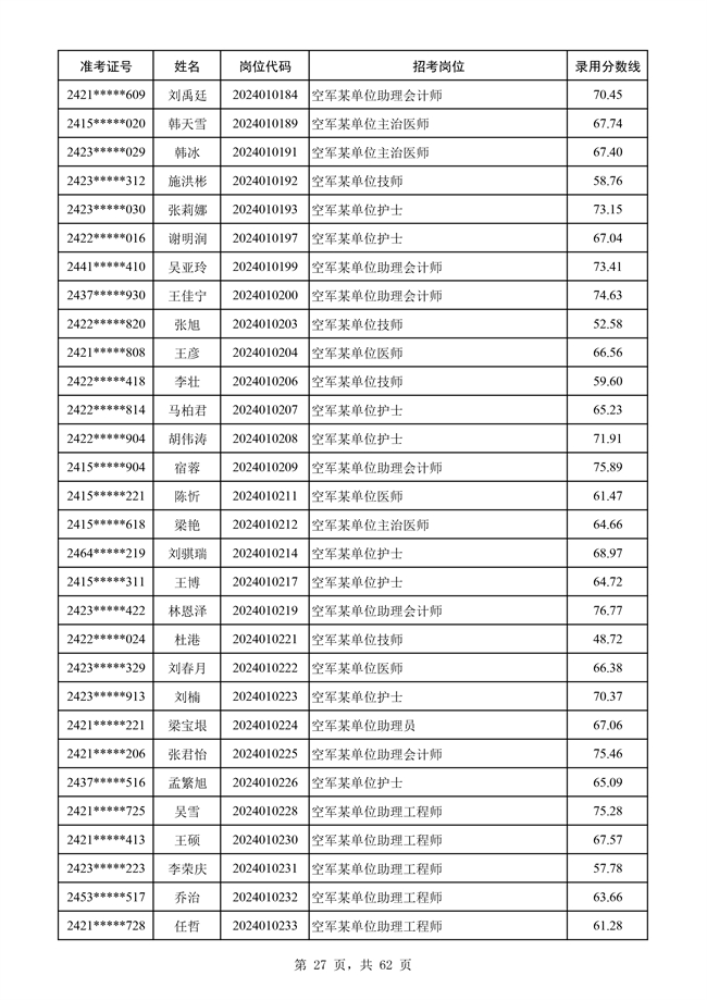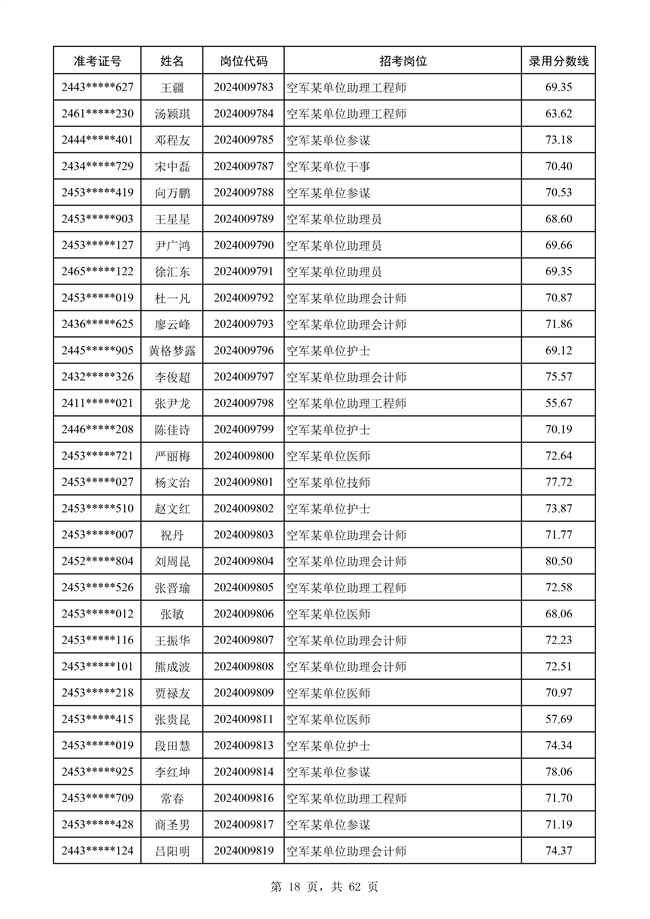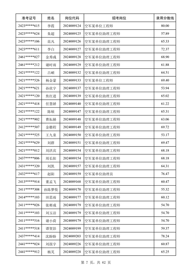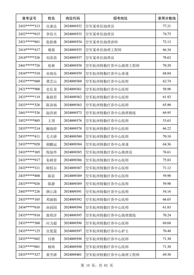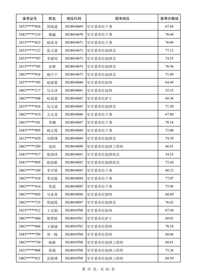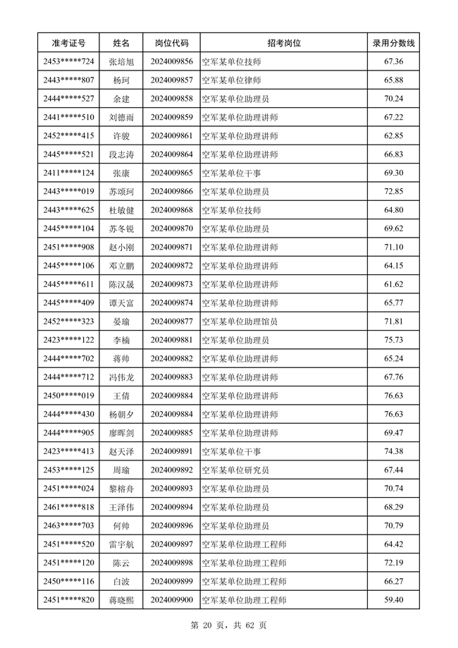 原文標題:公示空軍2024年文職人員第二批擬錄用對象名單