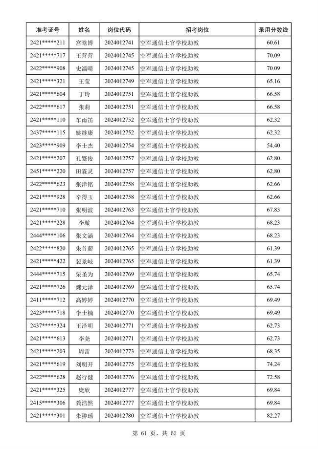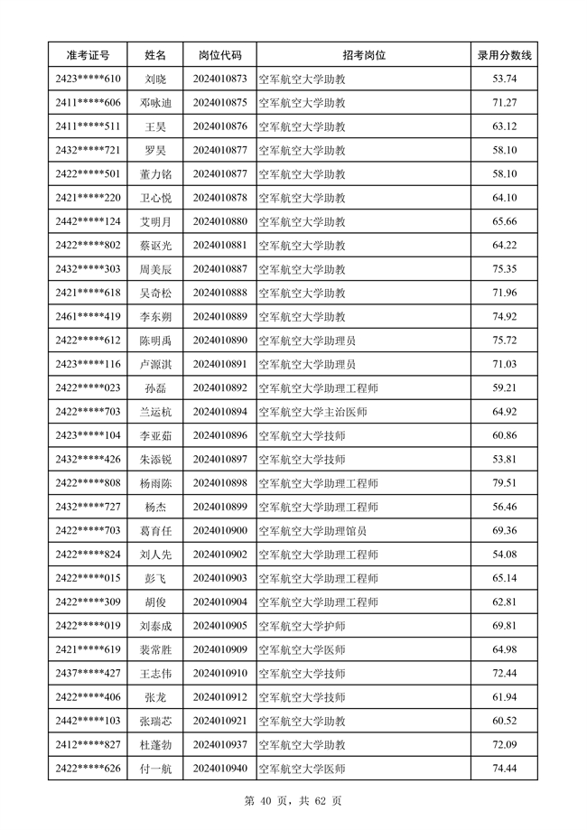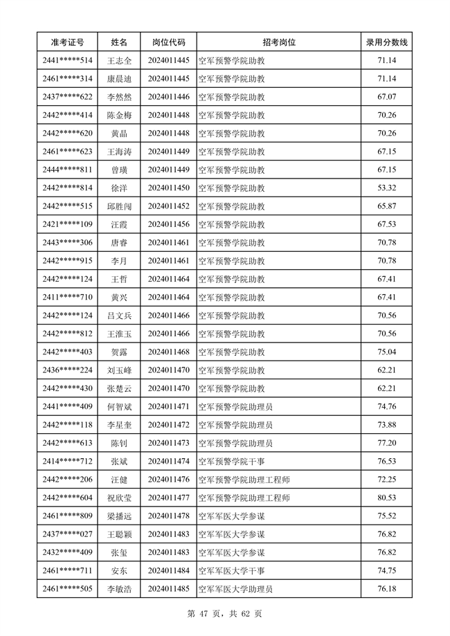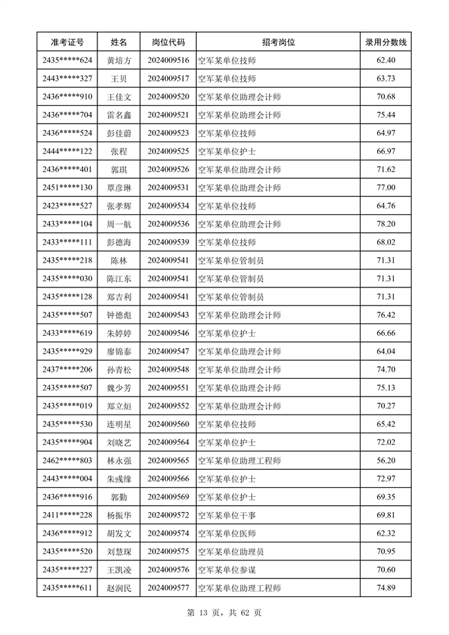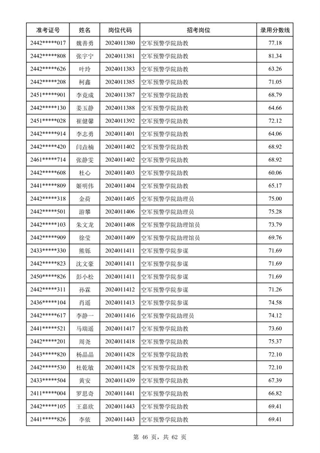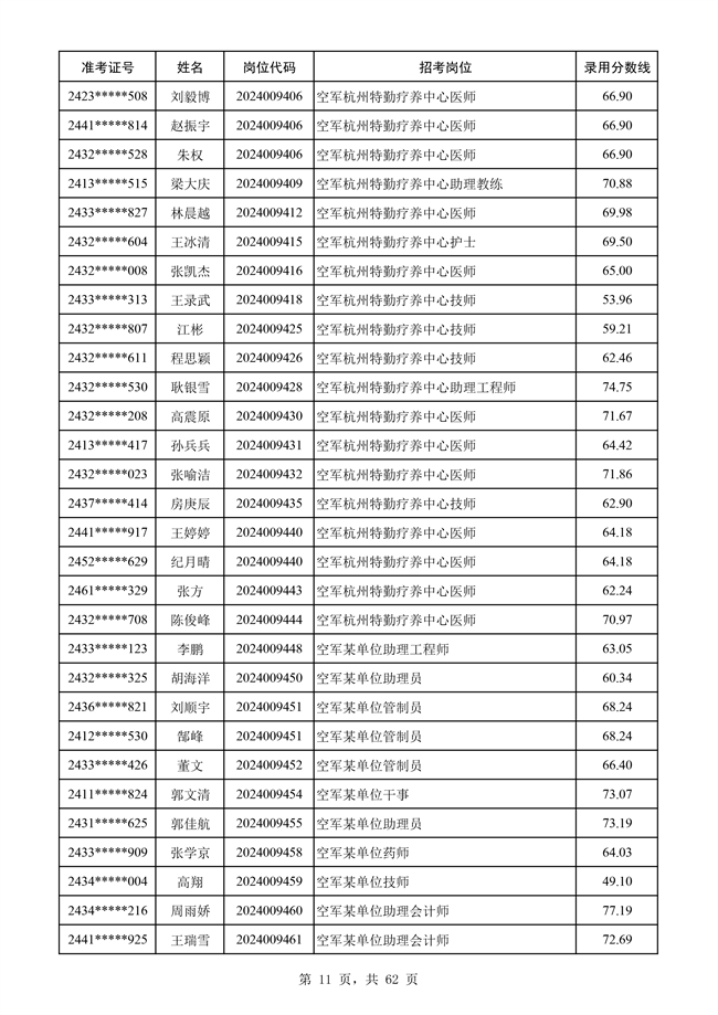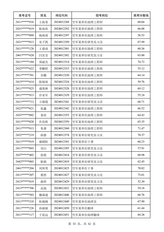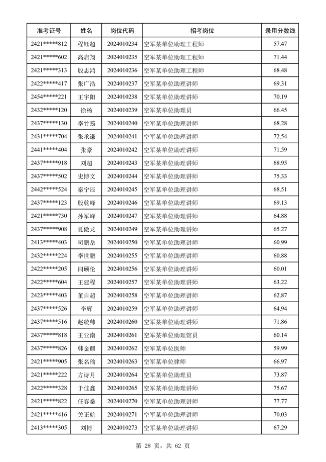 原文標題:公示空軍2024年文職人員第二批擬錄用對象名單