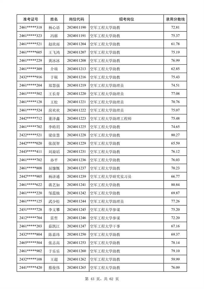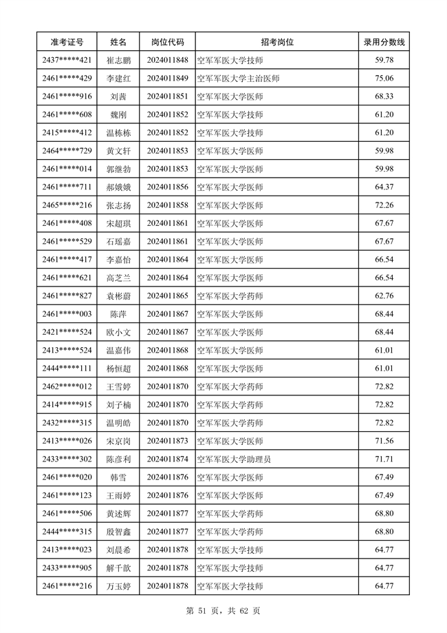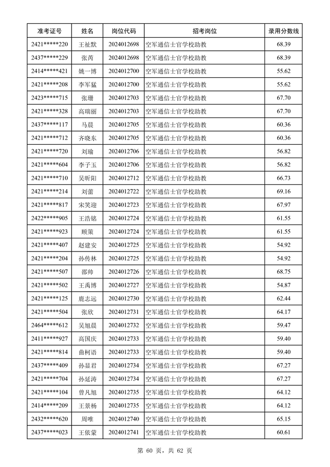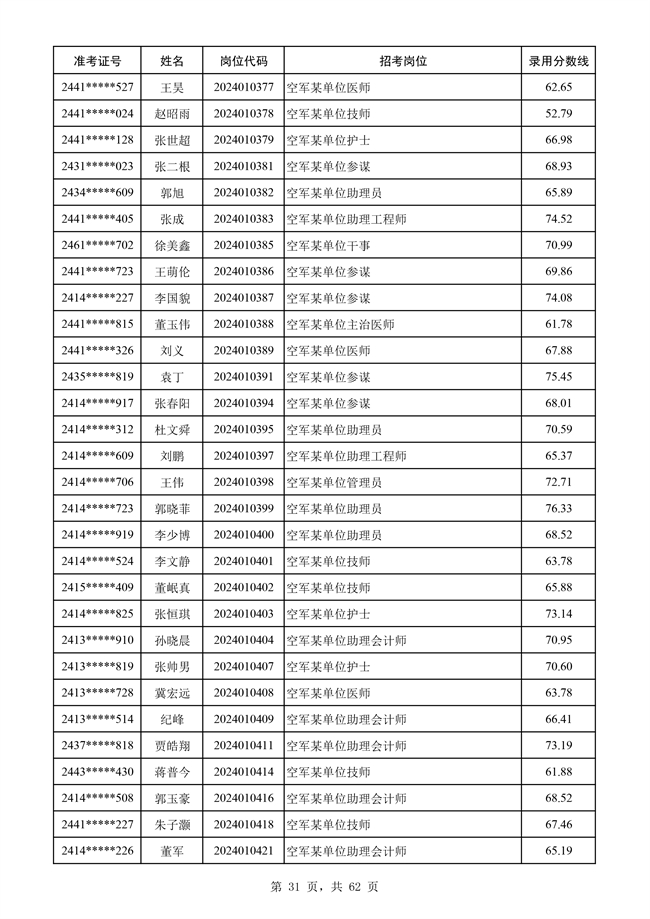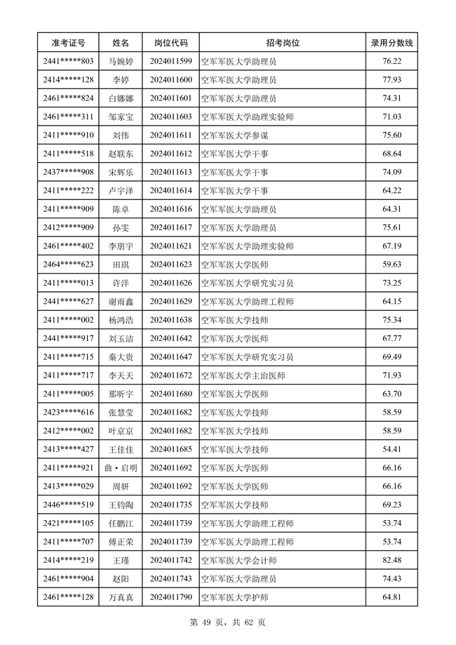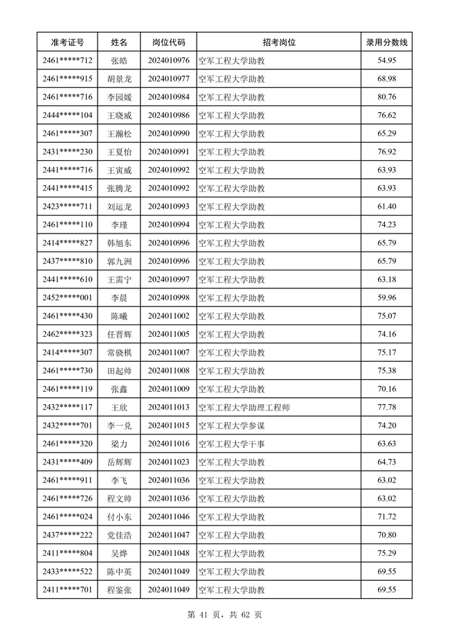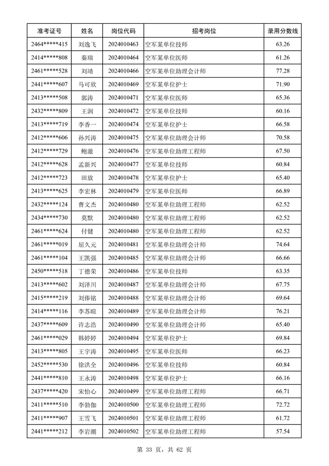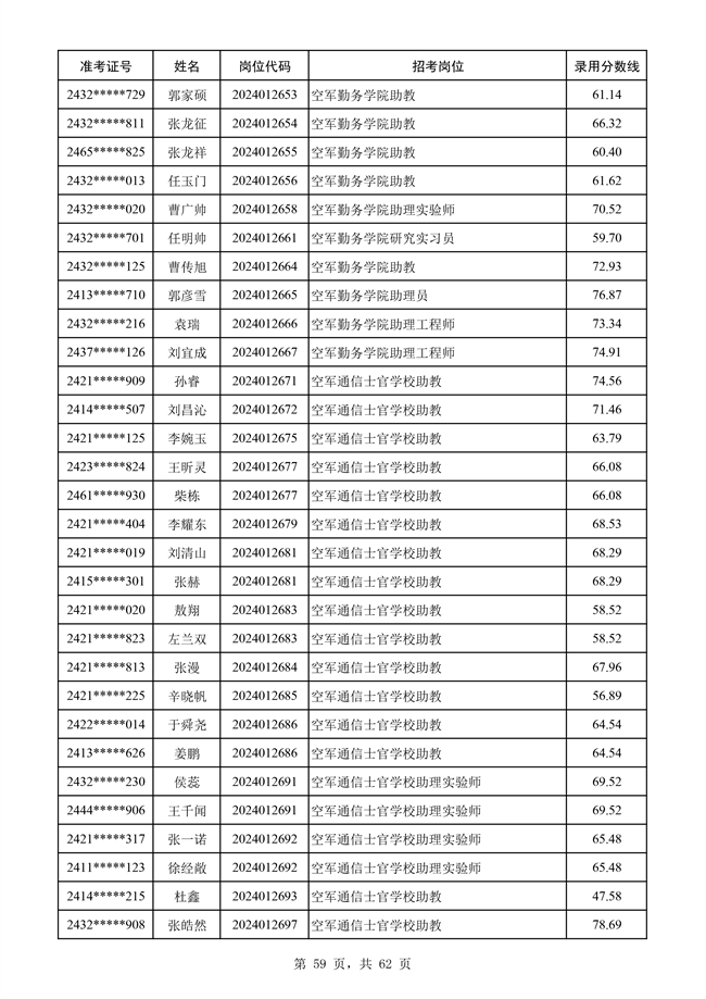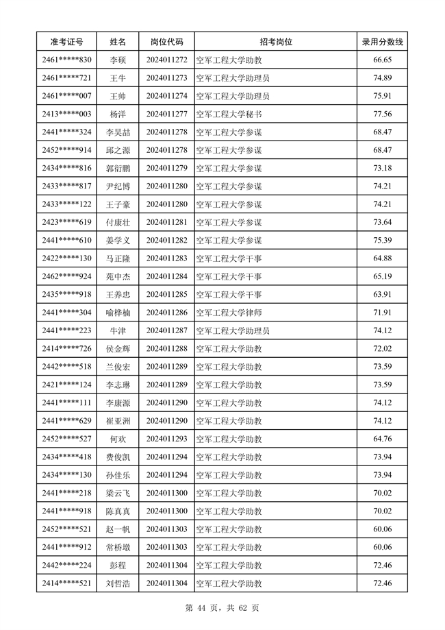原文標題:公示空軍2024年文職人員第二批擬錄用對象名單