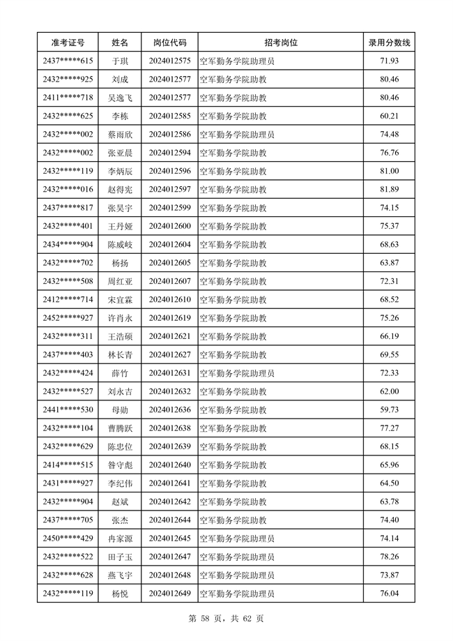 2025年武裝部文職人員擬錄用名單(含上岸分數(shù)線) 2025-10-09