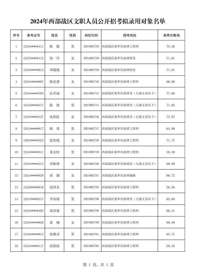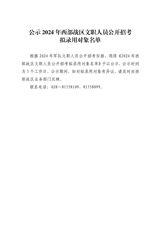 原文標題:公示2024年西部戰(zhàn)區(qū)文職人員公開招考擬錄用對象名單