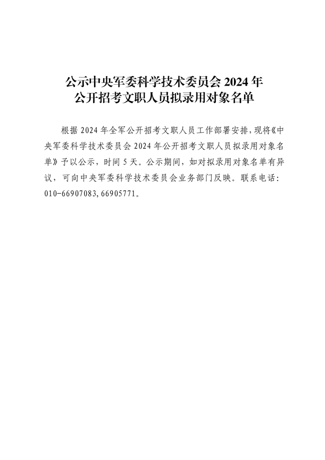 原文標題:公示中央軍委科學技術委員會2024年公開招考文職人員擬錄用對象名單