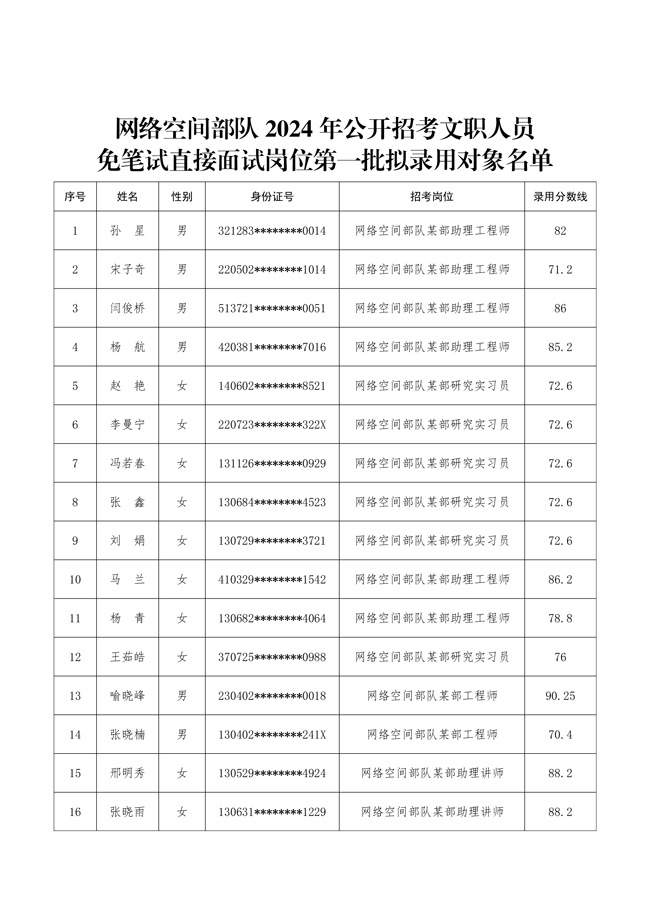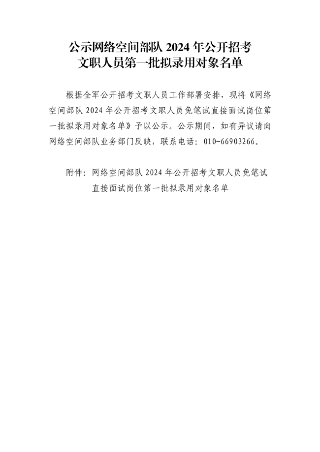 原文標題:公示網(wǎng)絡空間部隊2024年公開招考文職人員第一批擬錄用對象名單