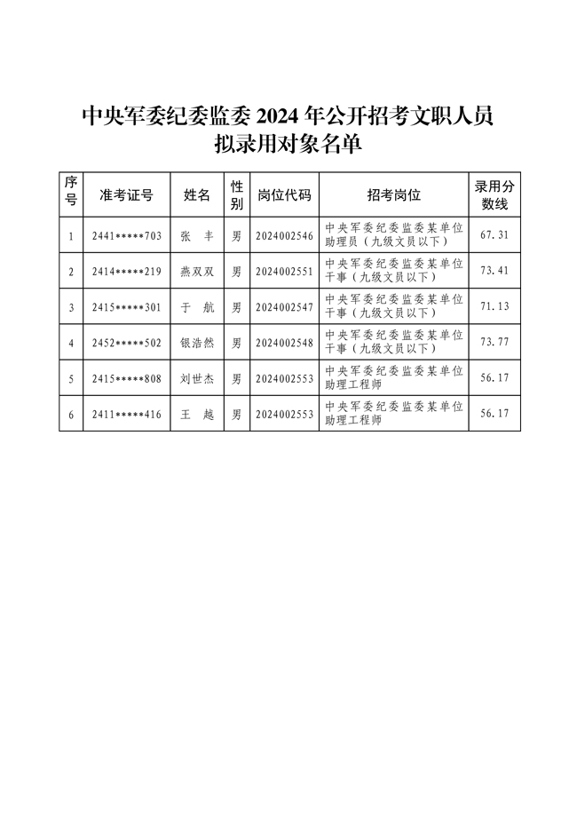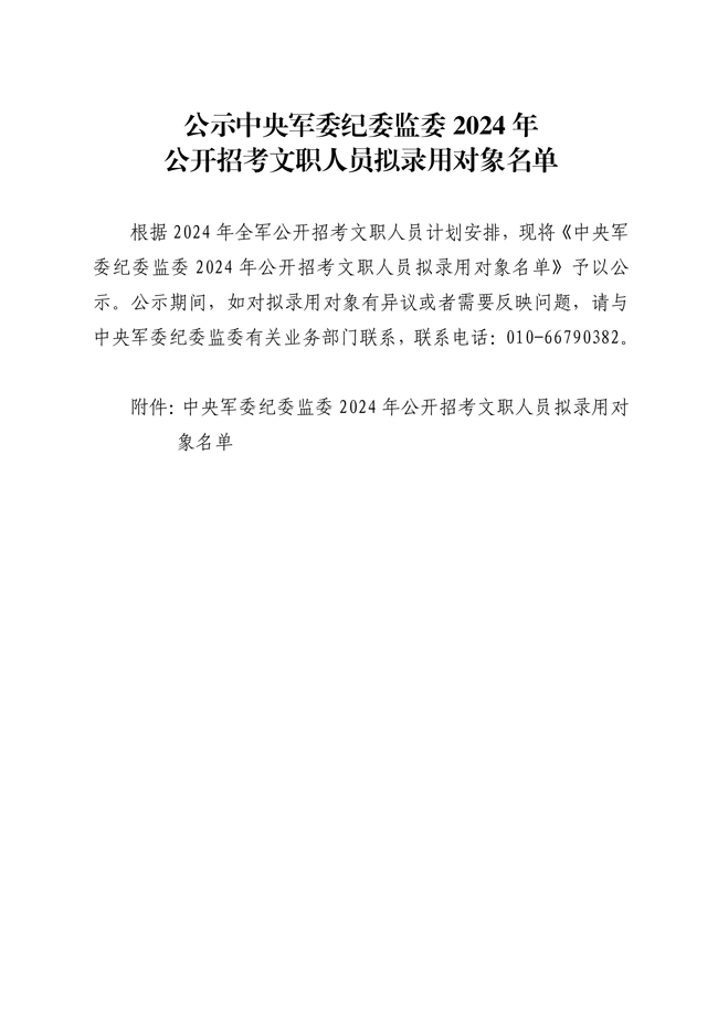 原文標題:公示中央軍委紀委監(jiān)委2024年公開招考文職人員擬錄用對象名單