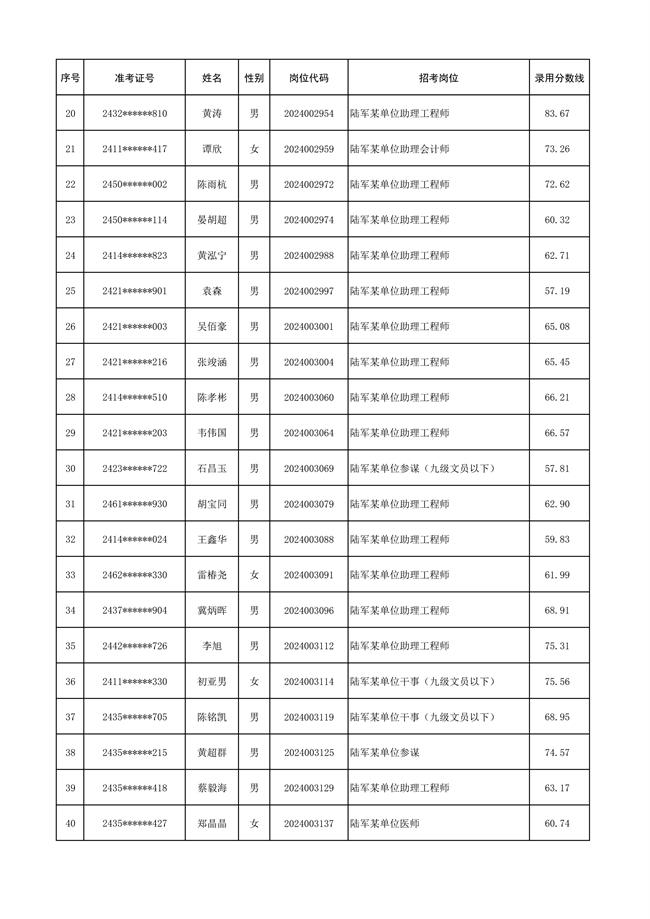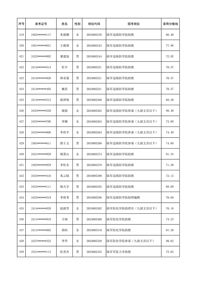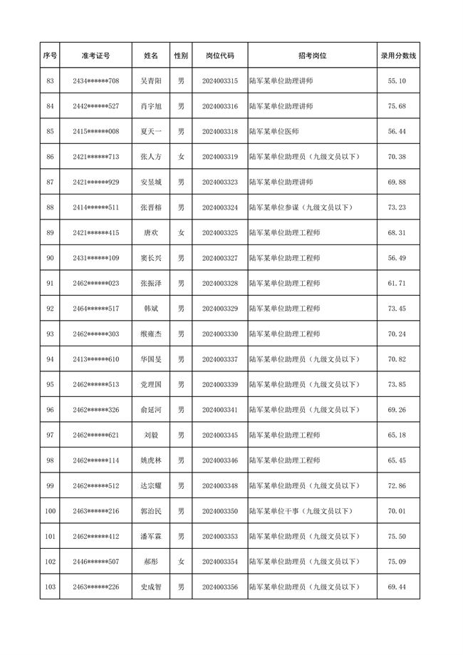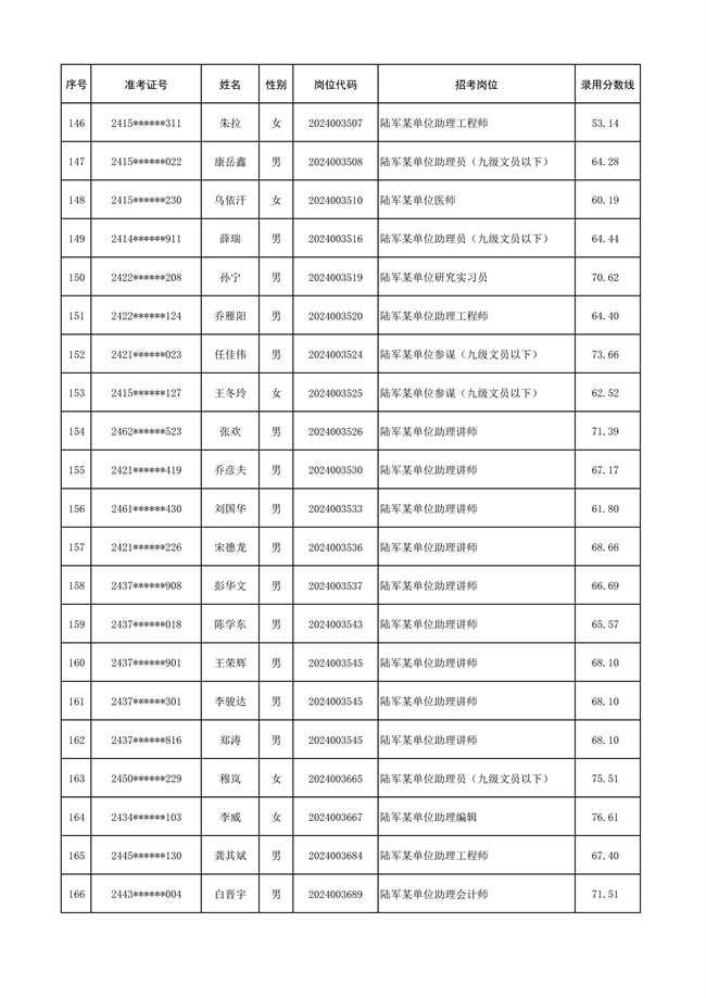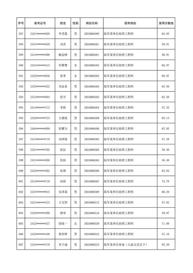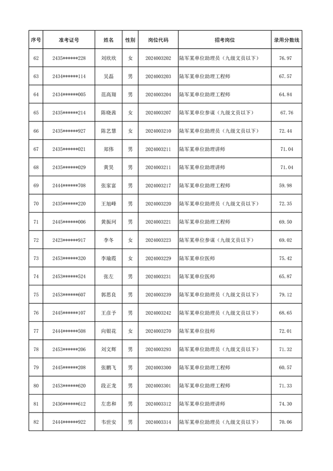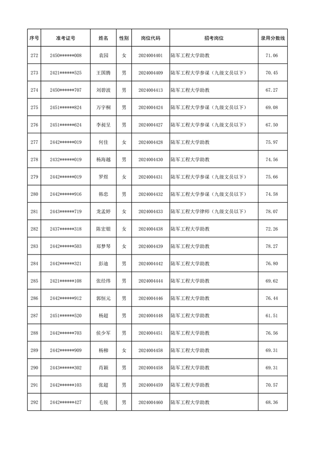 原文標(biāo)題:公示陸軍2024年公開招考管理和專業(yè)技術(shù)崗位文職人員第二批擬錄用對象名單