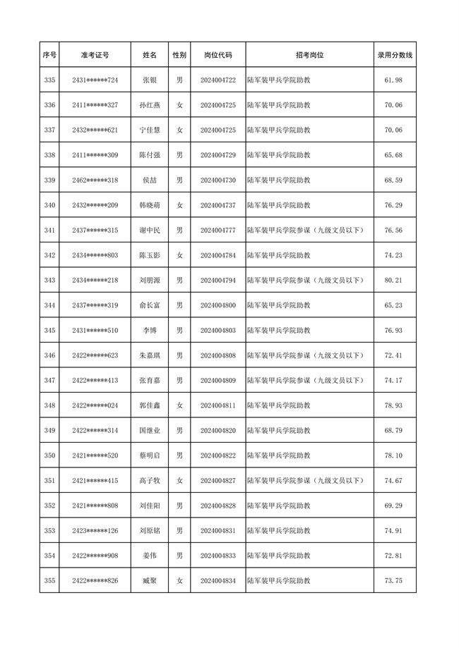 2025年武裝部文職人員擬錄用名單(含上岸分?jǐn)?shù)線) 2025-10-09