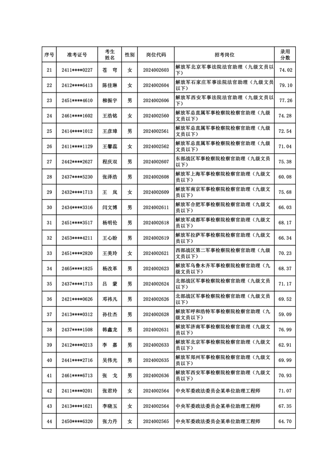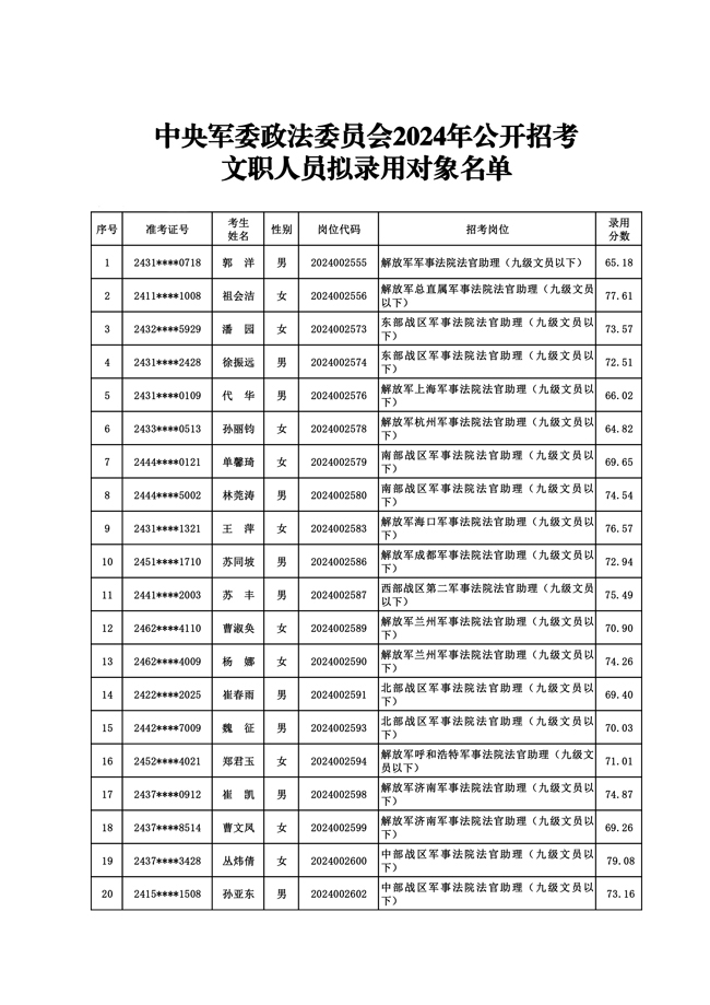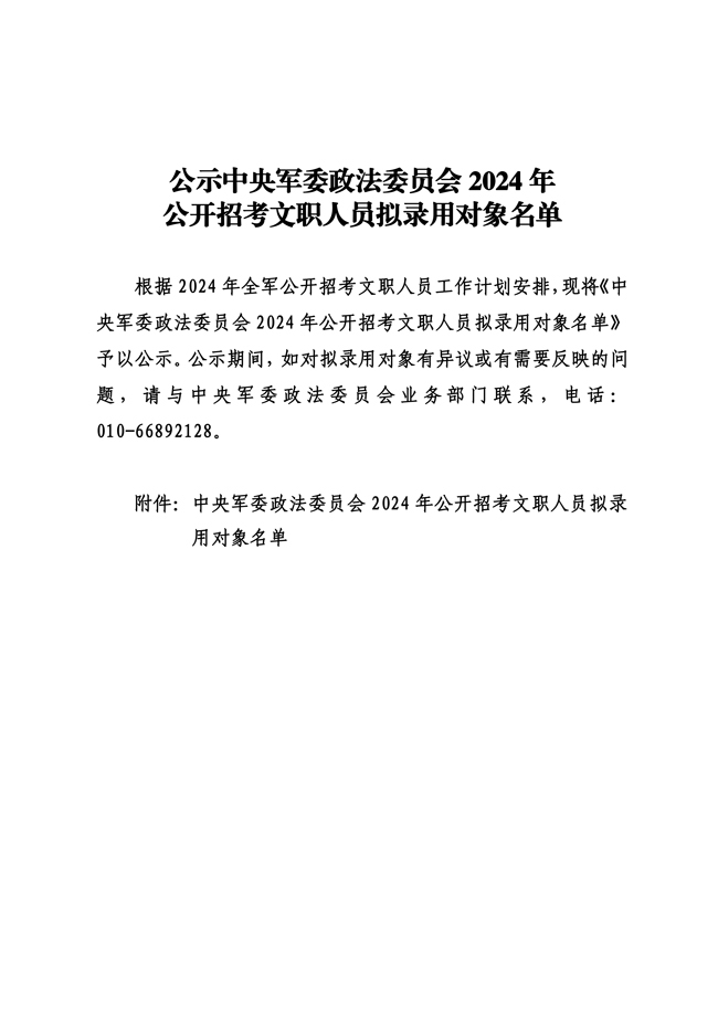 原文標(biāo)題:公示中央軍委政法委員會(huì)2024年公開(kāi)招考文職人員擬錄用對(duì)象名單