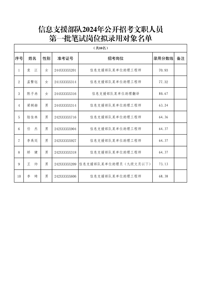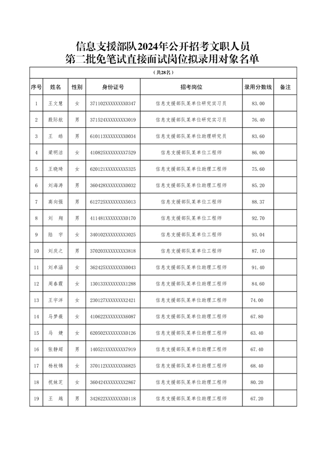 原文標題:公示信息支援部隊2024年公開招考文職人員第二批擬錄用對象名單