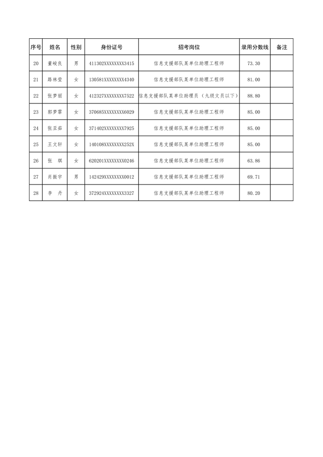 2025年武裝部文職人員擬錄用名單(含上岸分數(shù)線) 2025-10-09