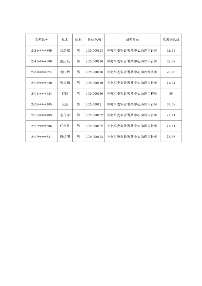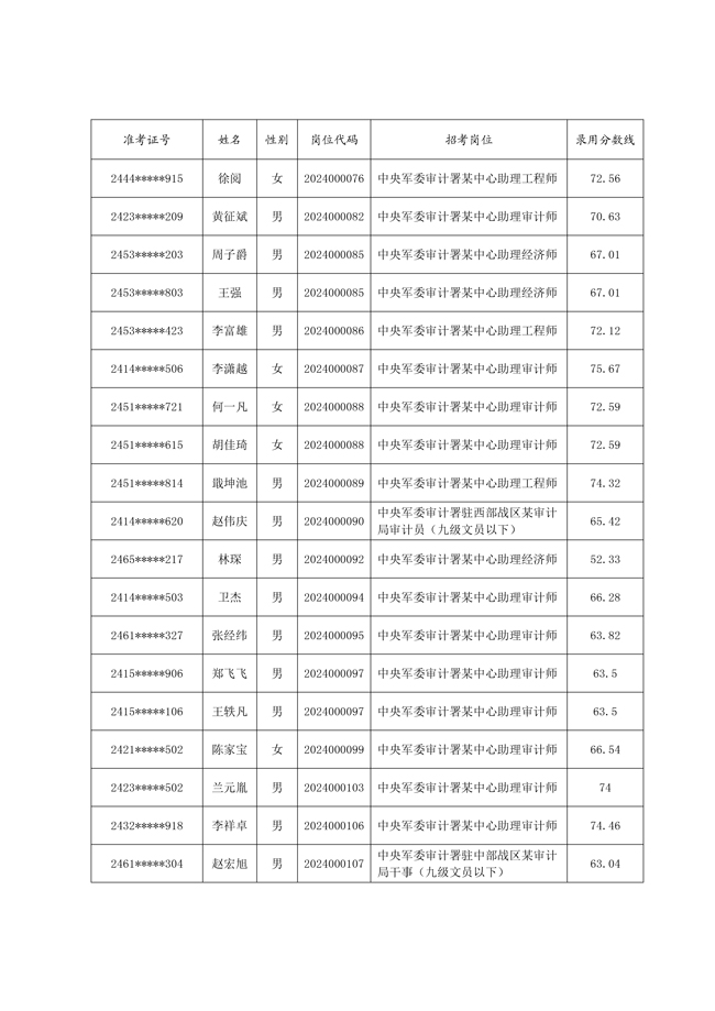 2025年武裝部文職人員擬錄用名單(含上岸分數線) 2025-10-09
