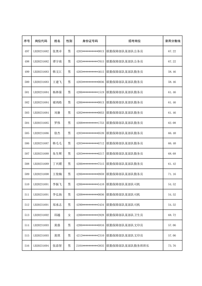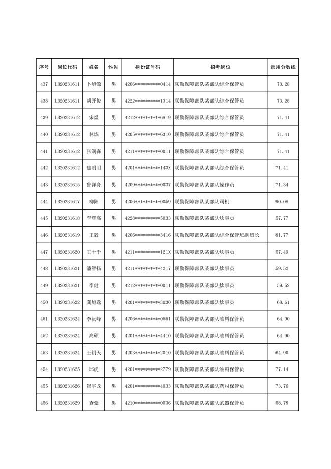 2025年武裝部文職人員擬錄用名單(含上岸分數(shù)線) 2025-10-09