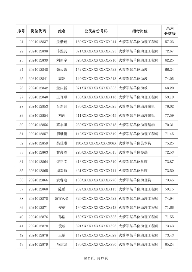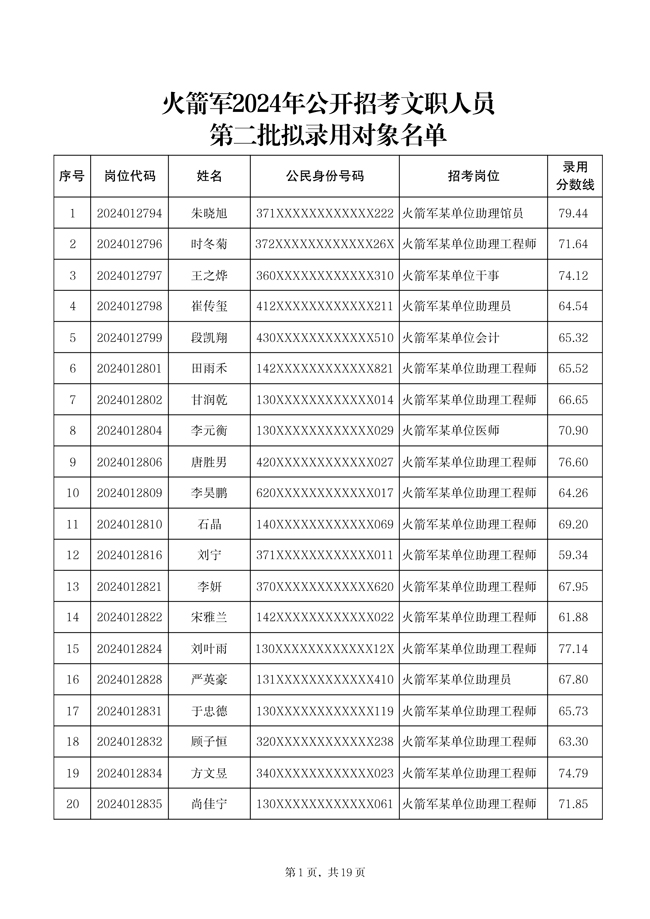 原文標(biāo)題:公示火箭軍2024年公開招考文職人員第二批擬錄用對(duì)象名單
