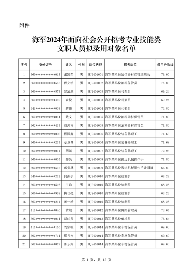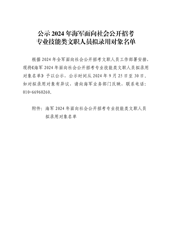 原文標(biāo)題:公示2024年海軍面向社會公開招考專業(yè)技能類文職人員擬錄用對象名單