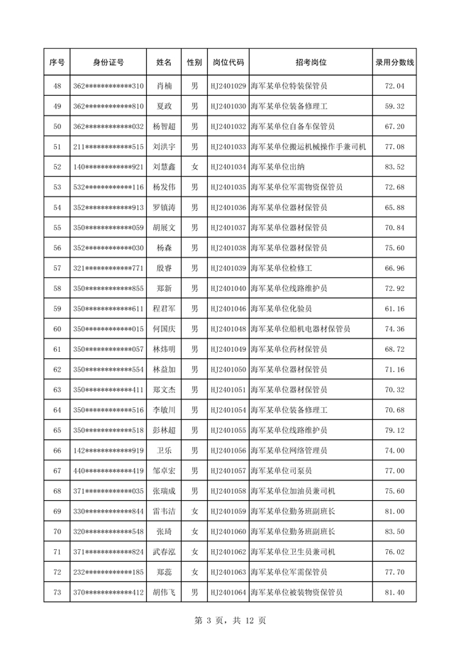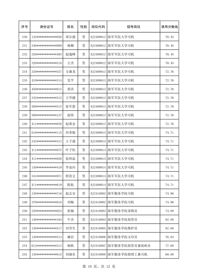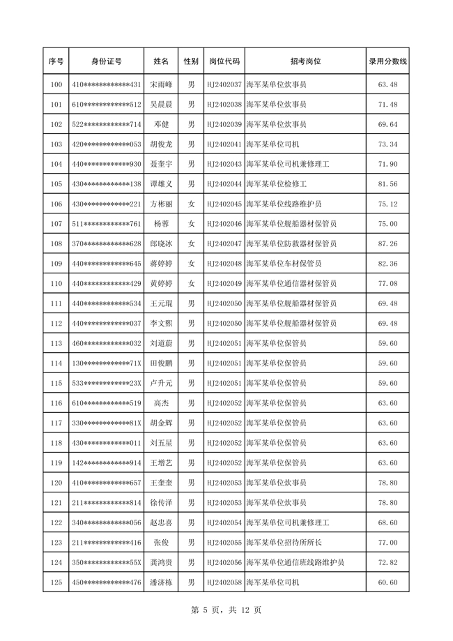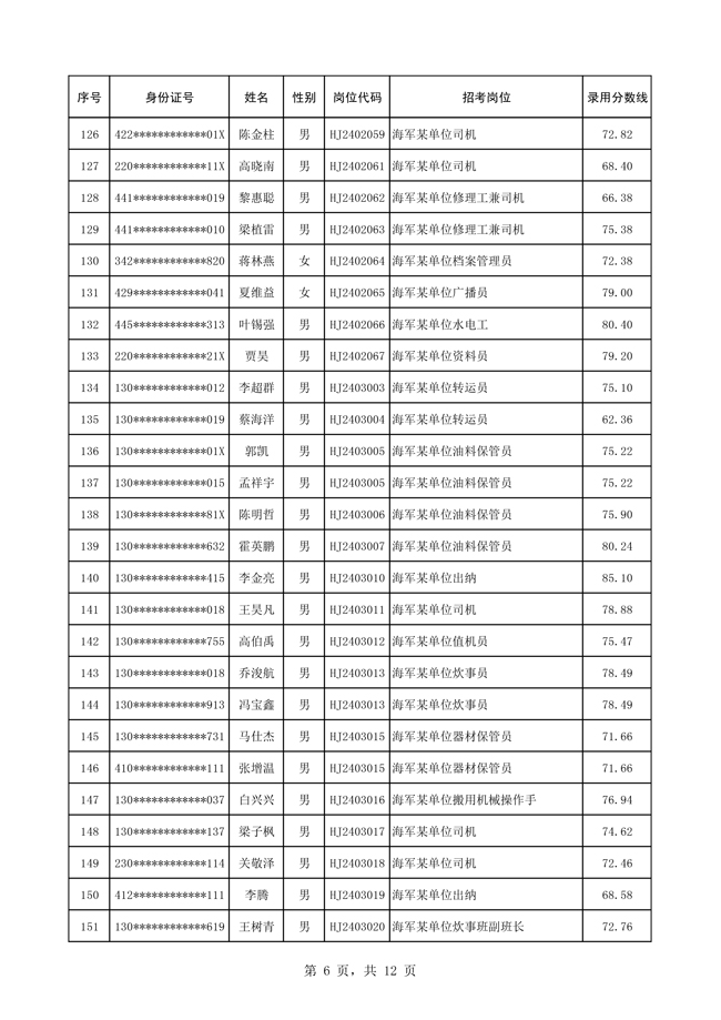 2025年武裝部文職人員擬錄用名單(含上岸分?jǐn)?shù)線) 2025-10-09