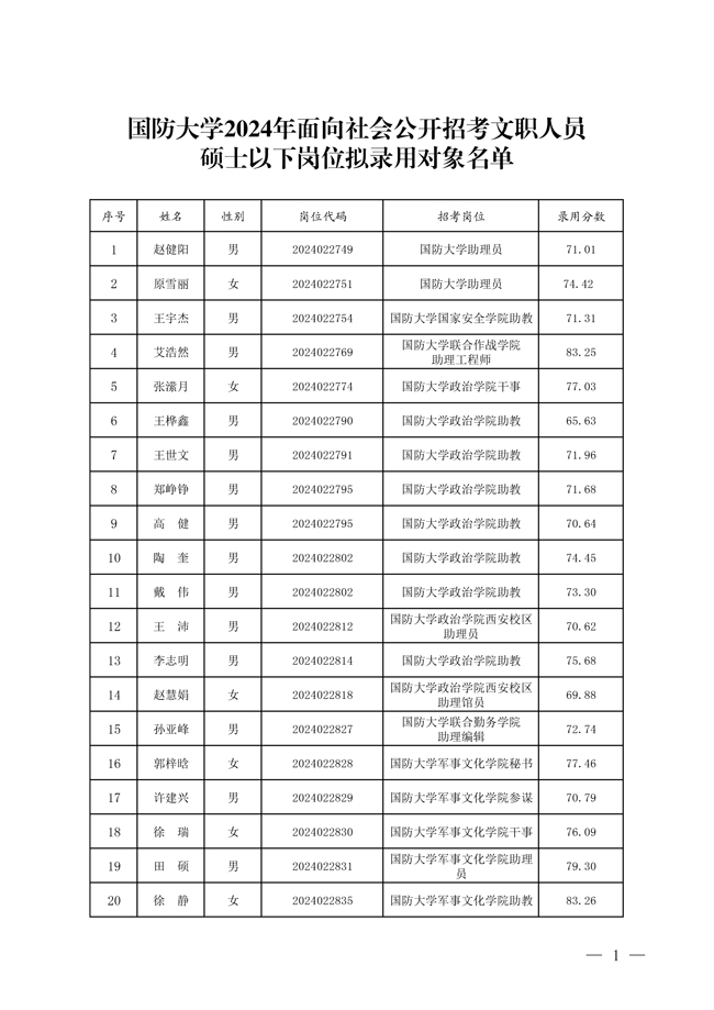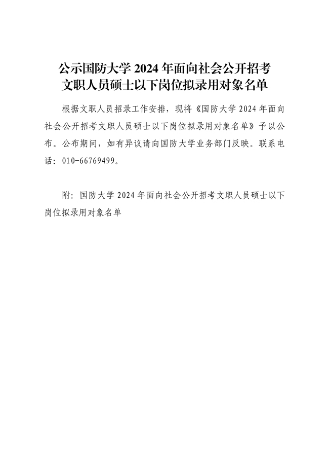 原文標題:公示國防大學(xué)2024年面向社會公開招考文職人員碩士以下崗位擬錄用對象名單