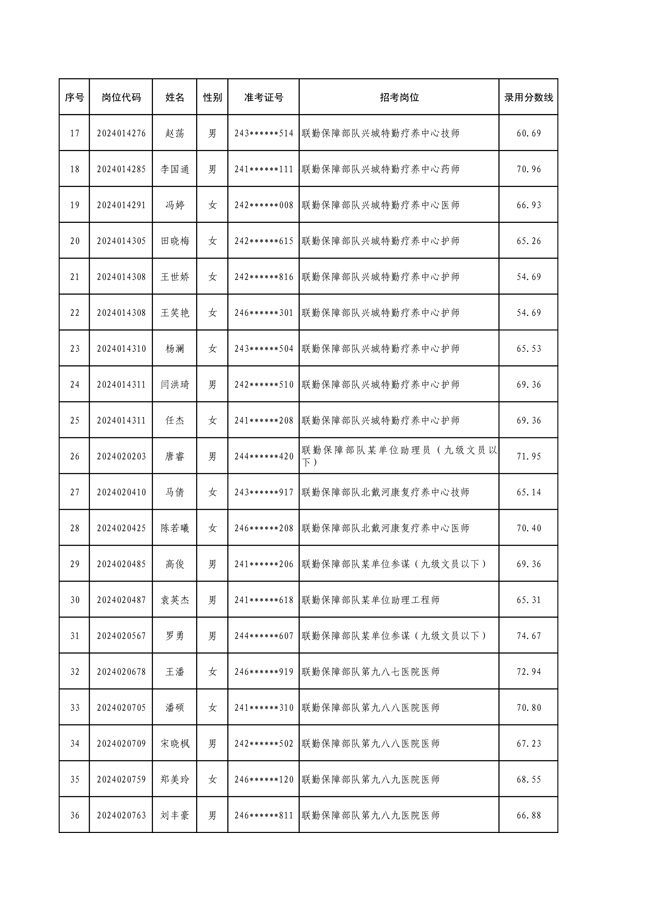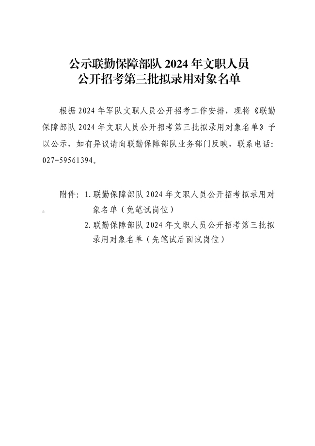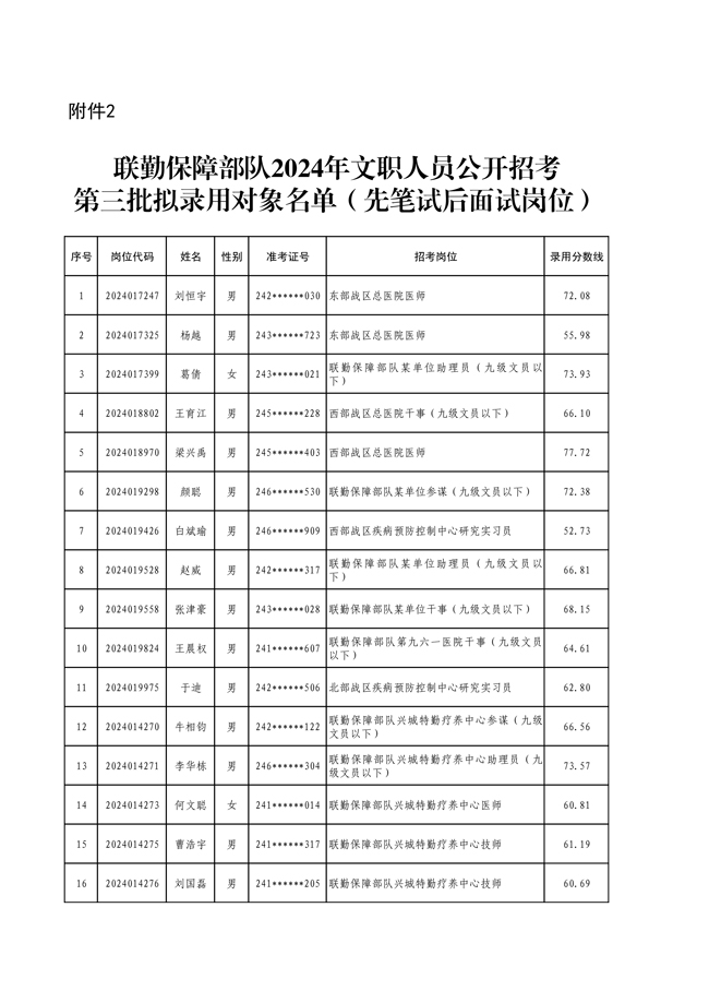 原文標題:公示聯(lián)勤保障部隊2024年文職人員公開招考第三批擬錄用對象名單