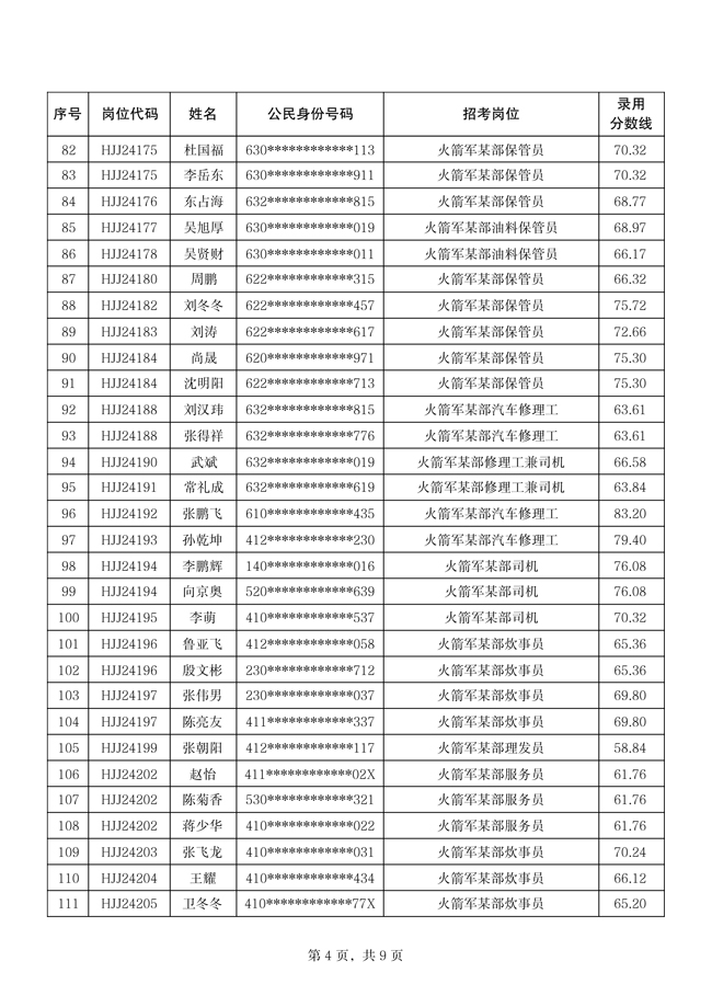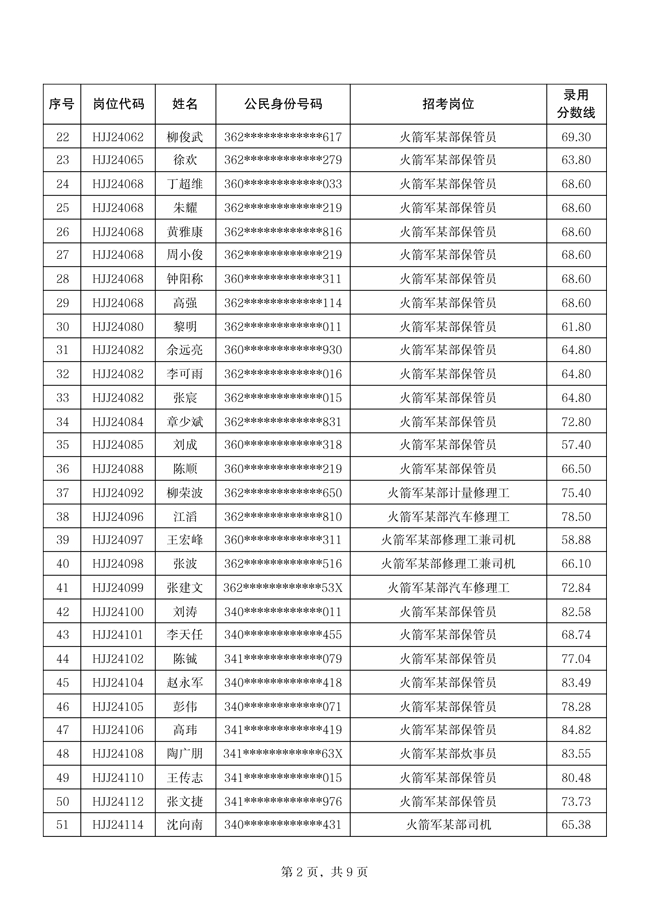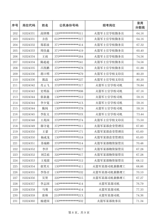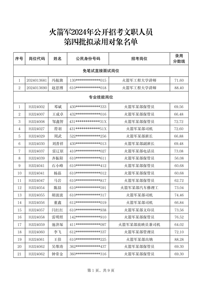 原文標題:公示火箭軍2024年公開招考文職人員第四批擬錄用對象名單