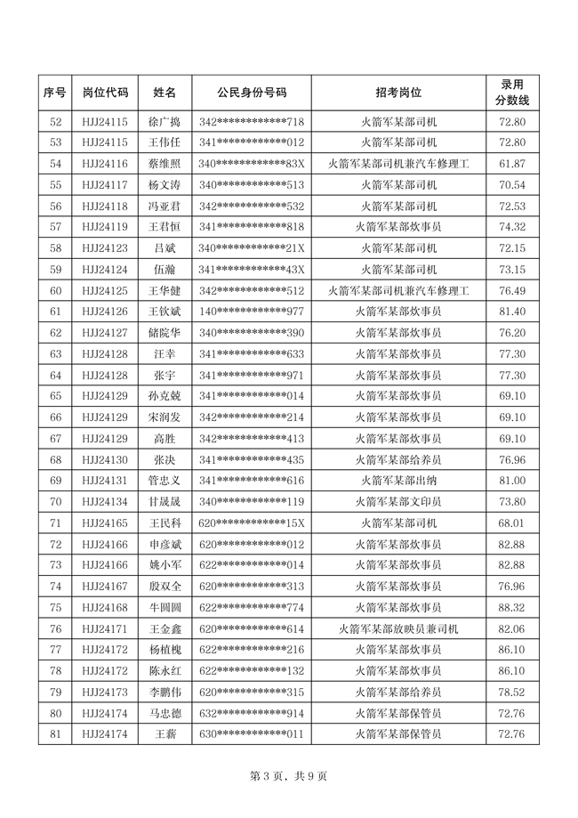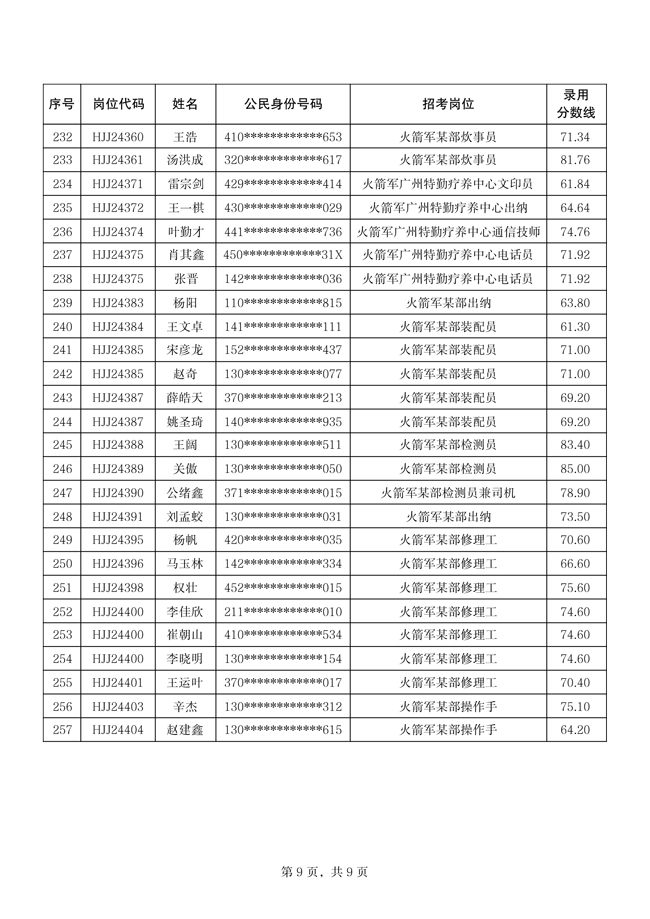 2025年武裝部文職人員擬錄用名單(含上岸分數(shù)線) 2025-10-09