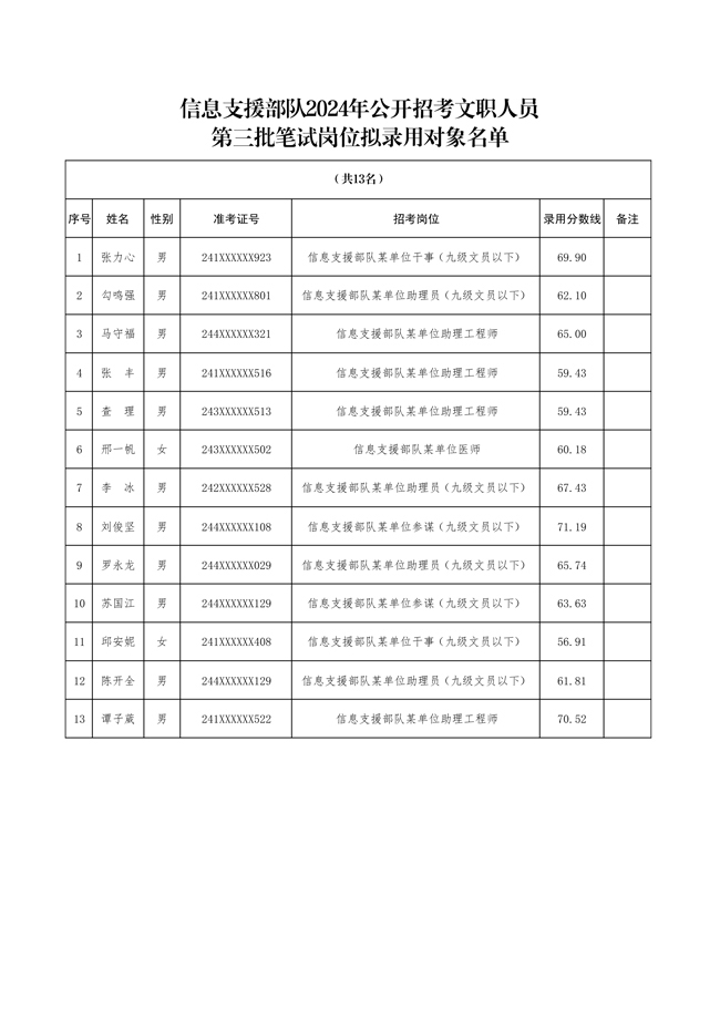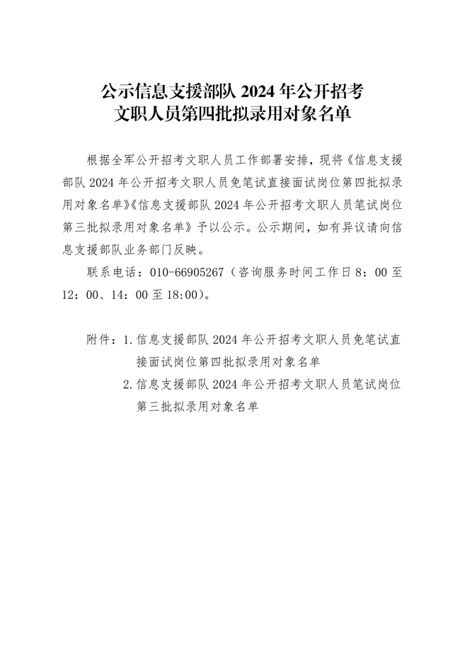 原文標(biāo)題:公示信息支援部隊(duì)2024年公開招考文職人員第四批擬錄用對象名單