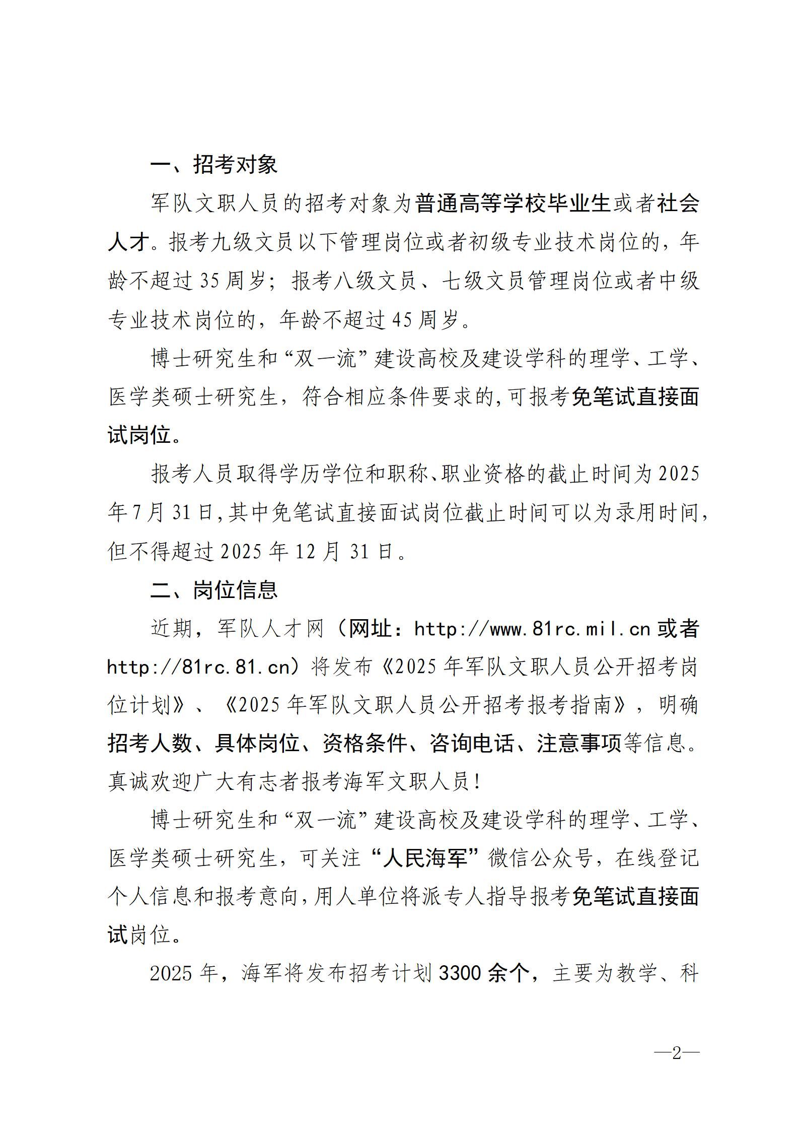 2025年軍隊(duì)文職人員先面試后筆試崗位報(bào)考指南(第二批)