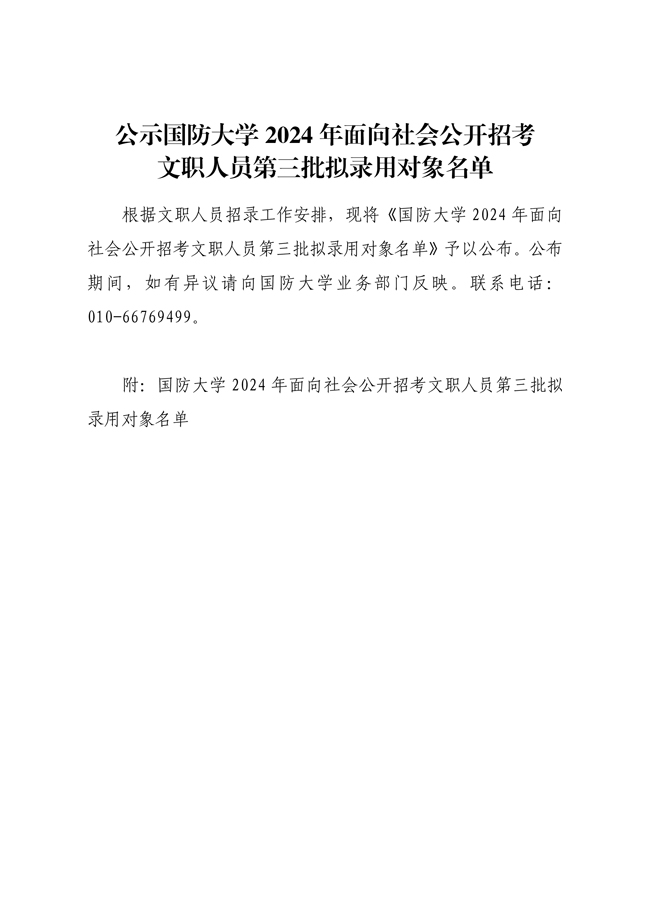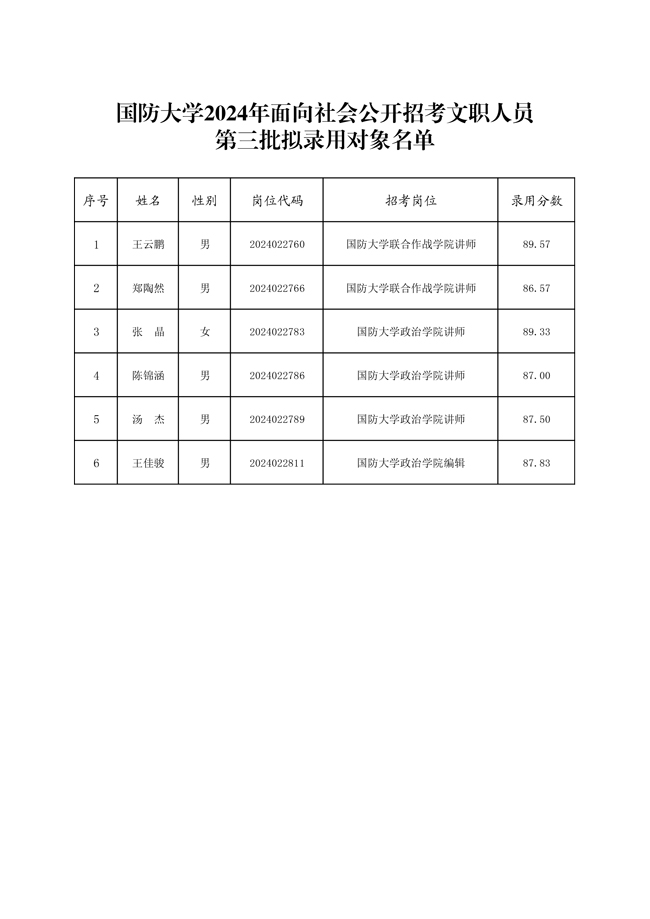 原文標題:公示國防大學2024年面向社會公開招考文職人員第三批擬錄用對象名單