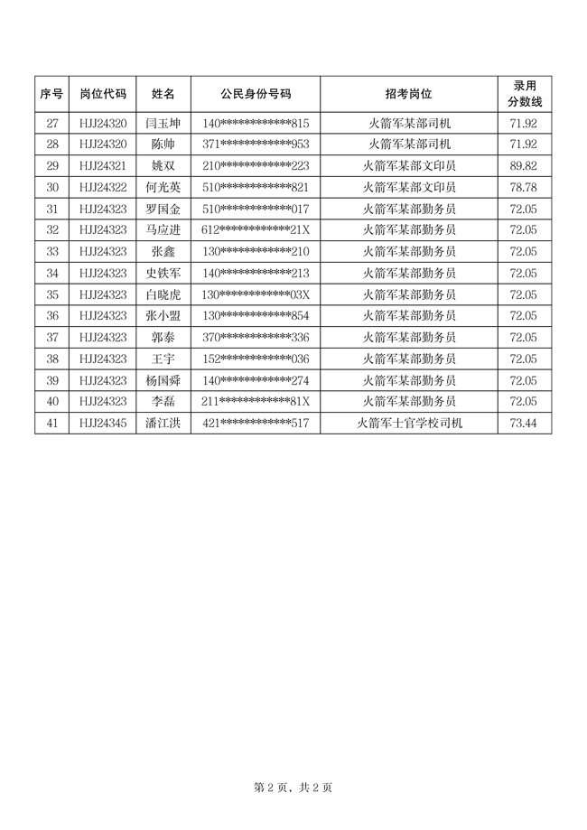 原文標(biāo)題:公示火箭軍2024年公開(kāi)招考文職人員第五批擬錄用對(duì)象名單