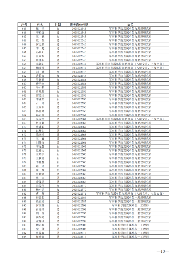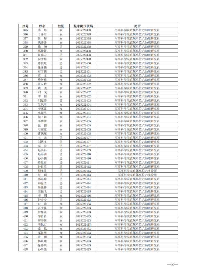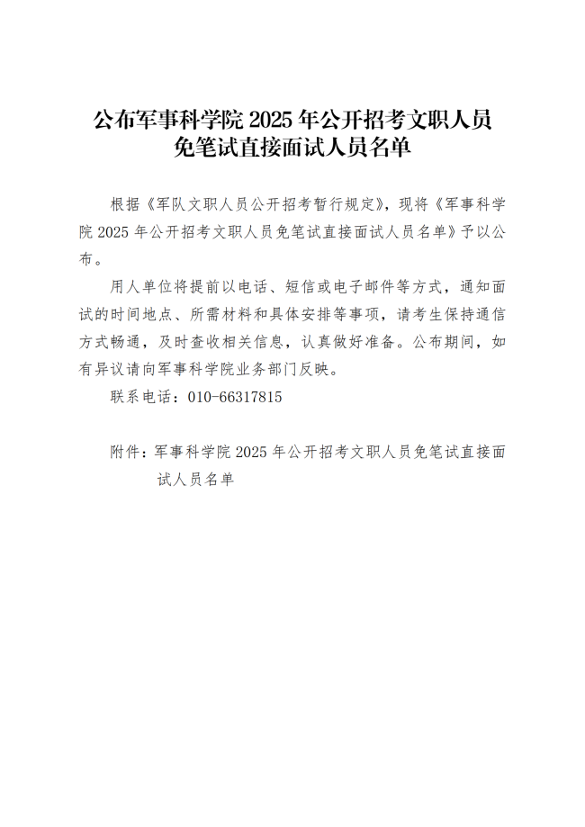 原文標(biāo)題:公布軍事科學(xué)院2025年公開(kāi)招考文職人員免筆試直接面試人員名單