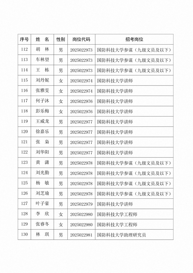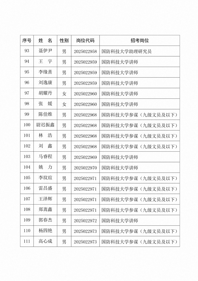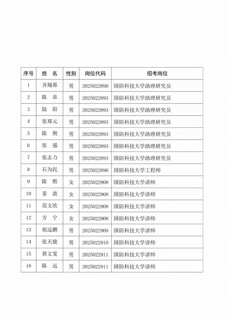 原文標題:公示國防科技大學(xué)2025年軍隊文職人員公開招考免筆試直接面試人員名單