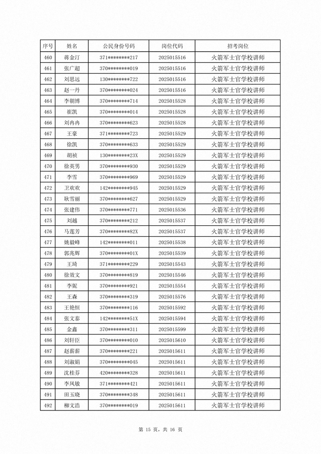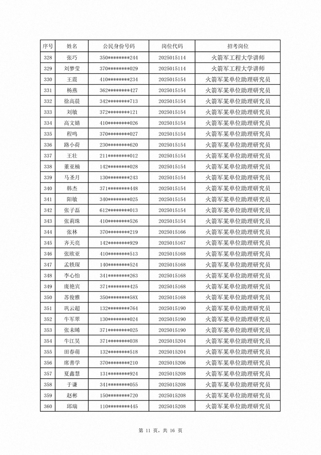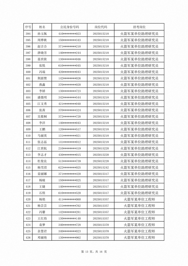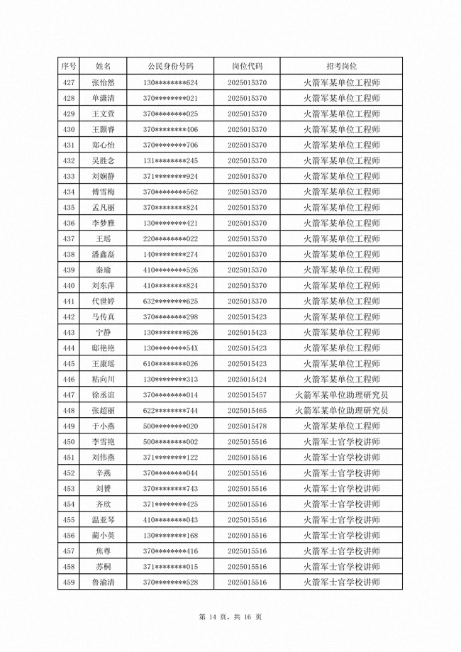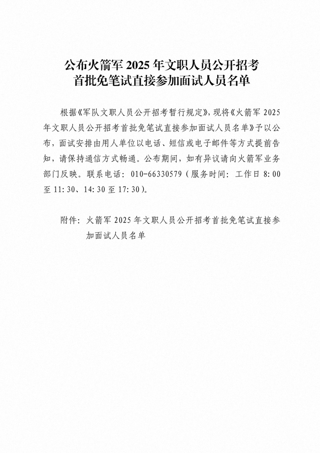 原文標題:公布火箭軍2025年文職人員公開招考 首批免筆試直接參加面試人員名單