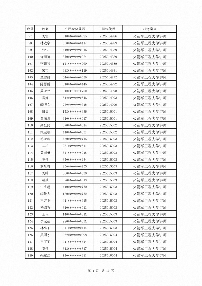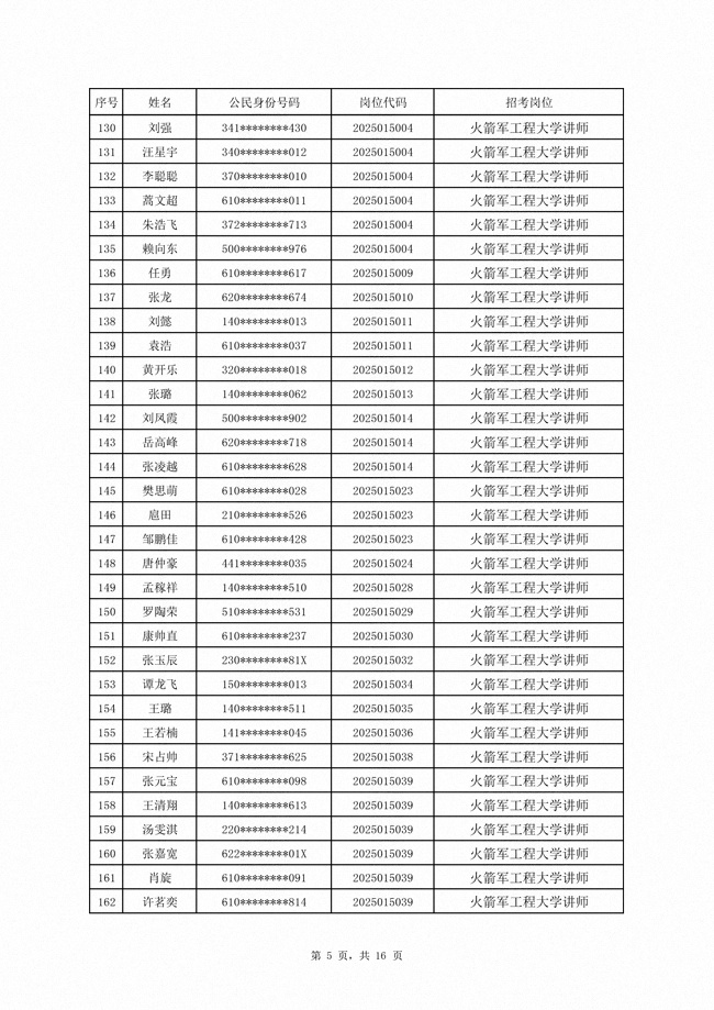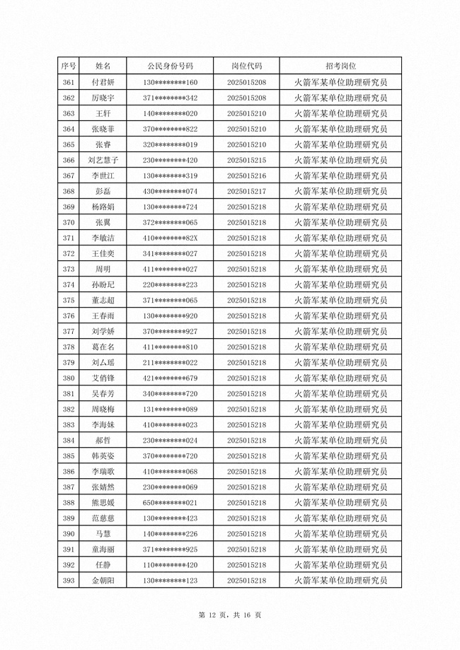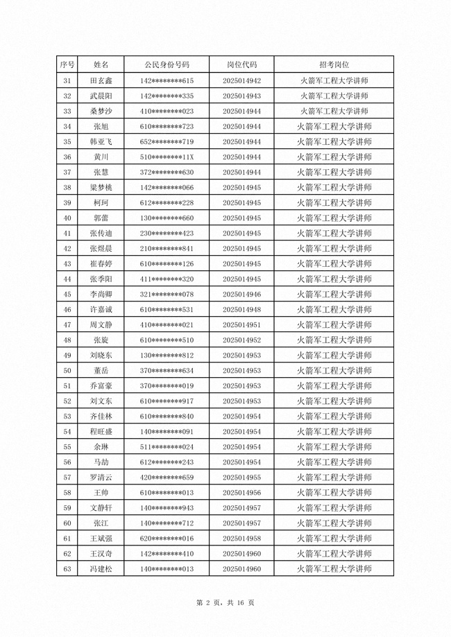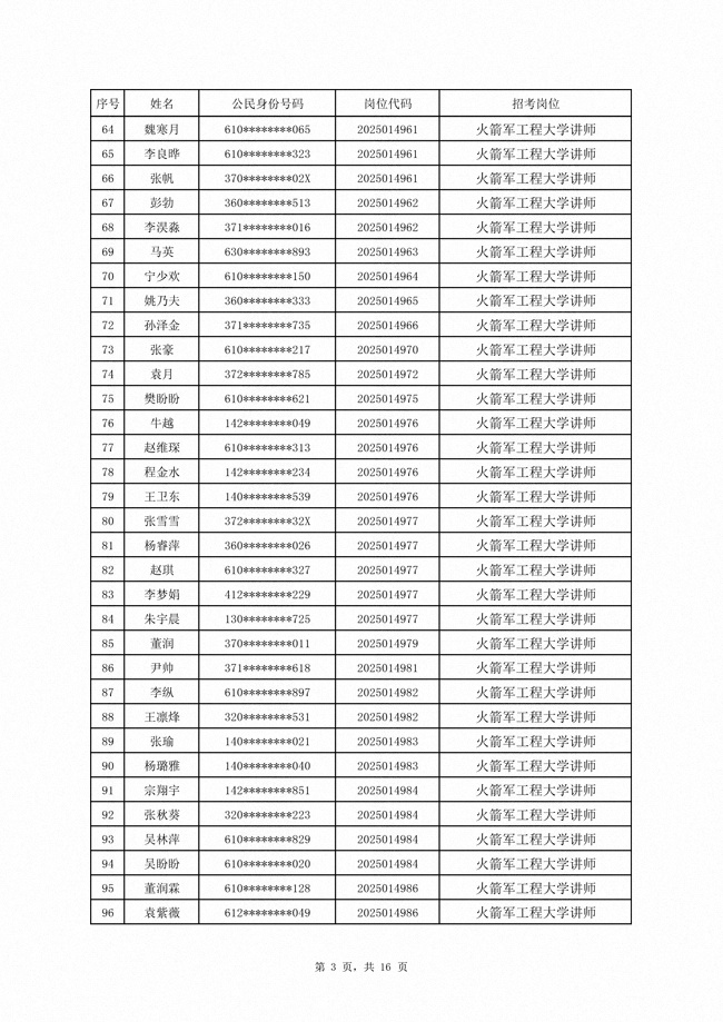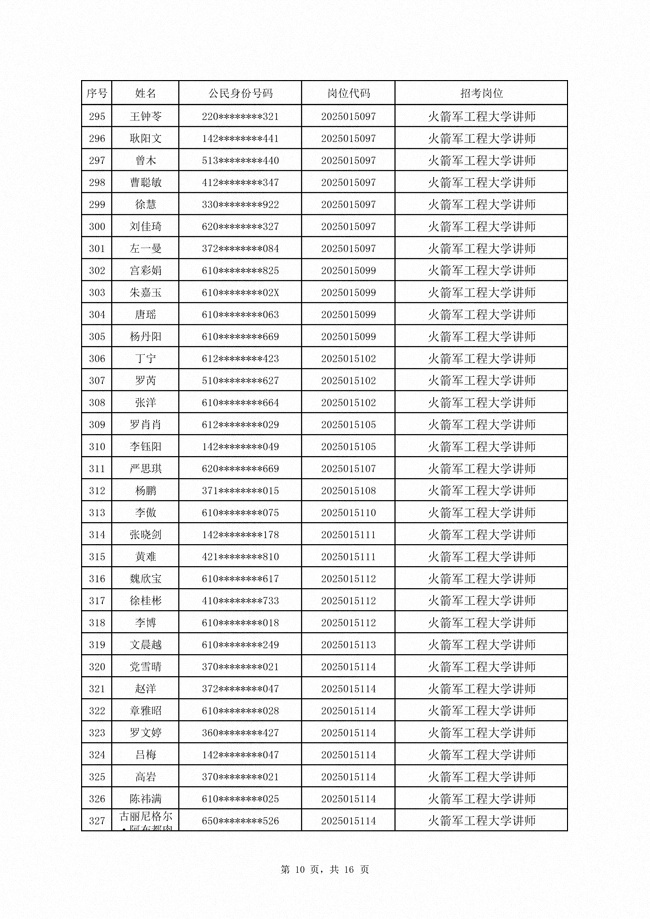 原文標題:公布火箭軍2025年文職人員公開招考 首批免筆試直接參加面試人員名單