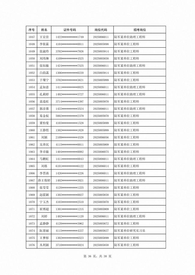 原文標(biāo)題:公布陸軍2025年公開(kāi)招考文職人員 免筆試直接參加面試人員名單