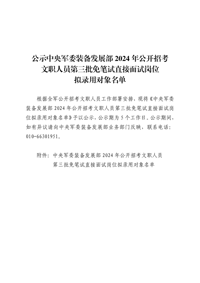 原文標(biāo)題:公示中央軍委裝備發(fā)展部2024年公開招考文職人員第三批免筆試直接面試崗位擬錄用對(duì)象名單