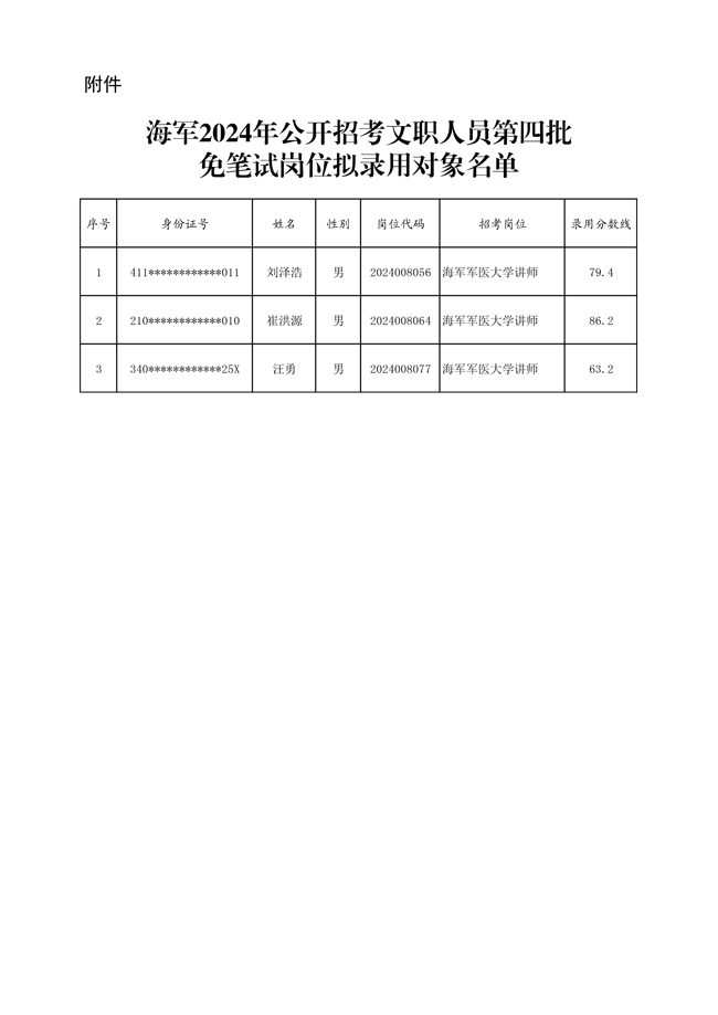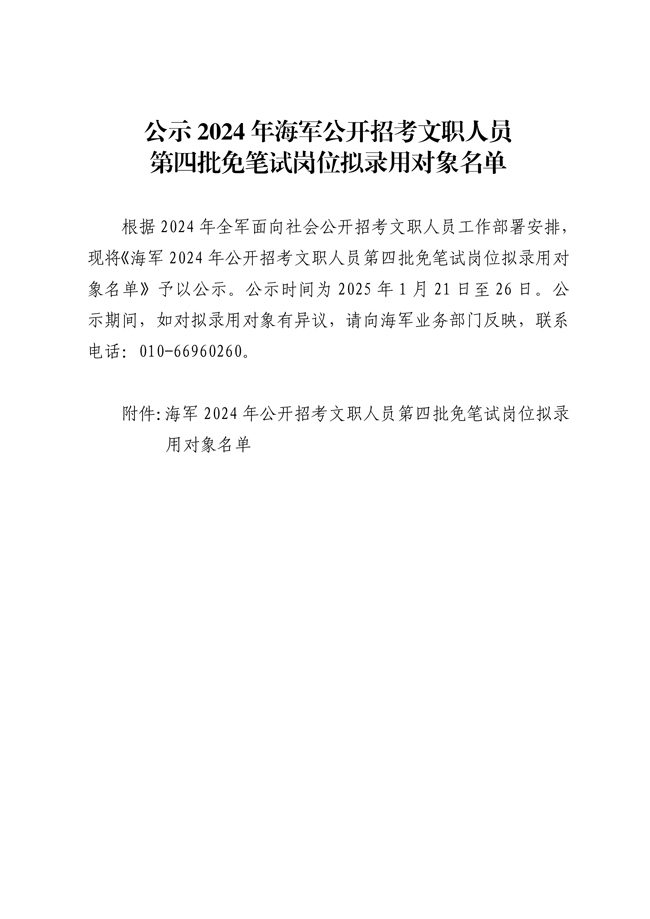 原文標(biāo)題:公示2024年海軍公開招考文職人員 第四批免筆試崗位擬錄用對象名單