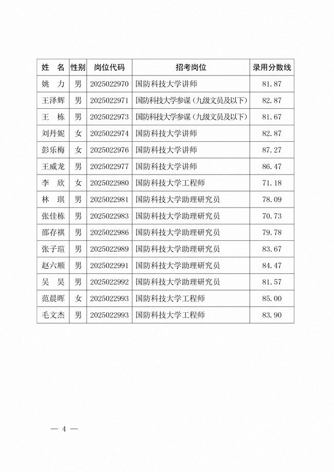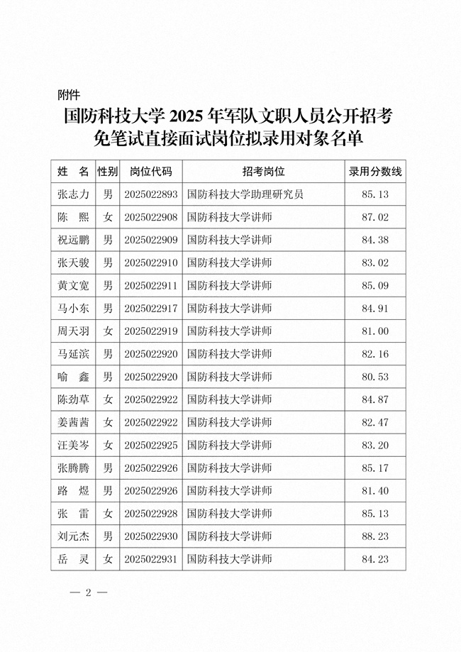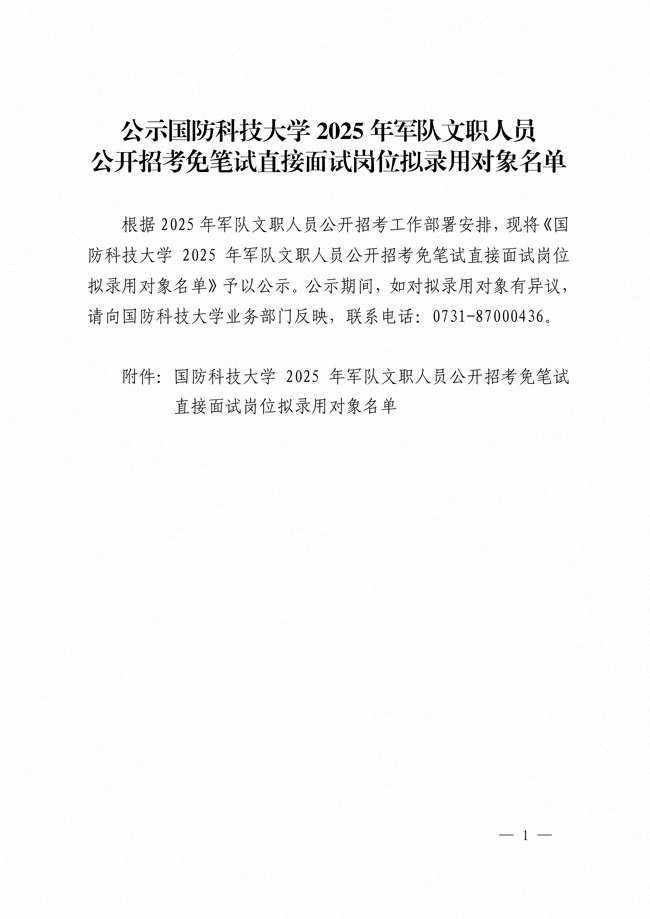 原文標(biāo)題:公示國防科技大學(xué)2025年軍隊文職人員公開招考免筆試直接面試崗位擬錄用對象名單