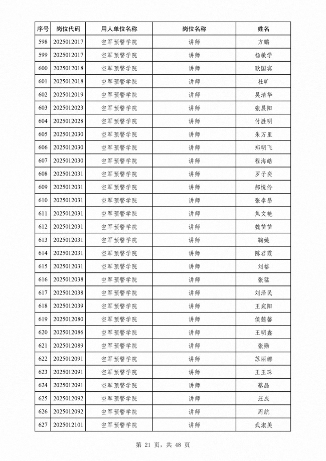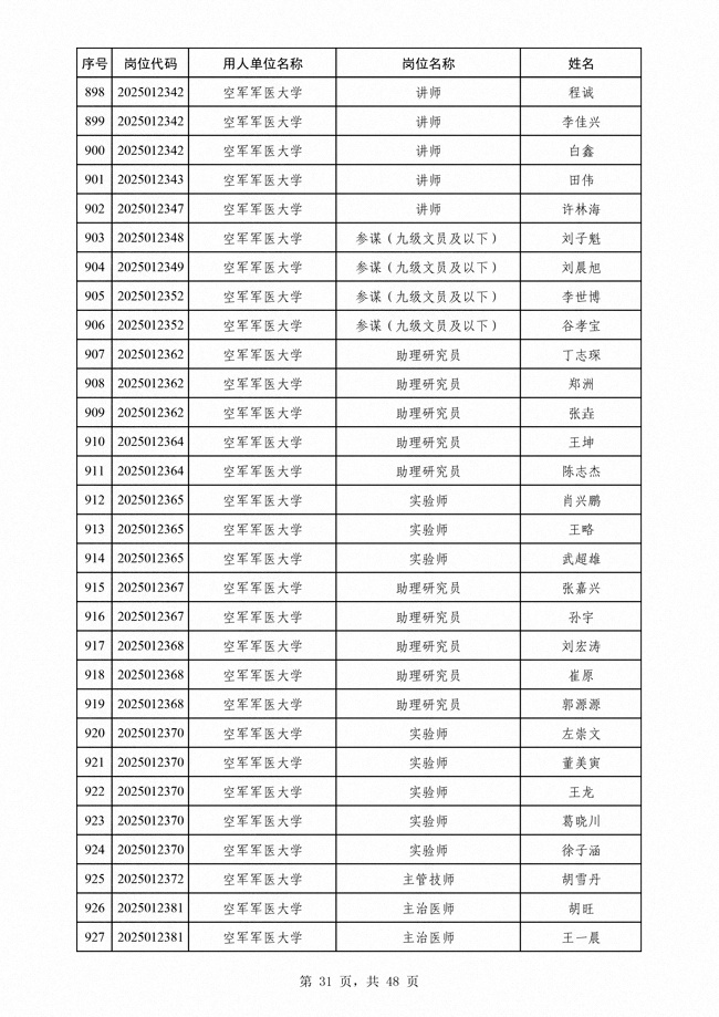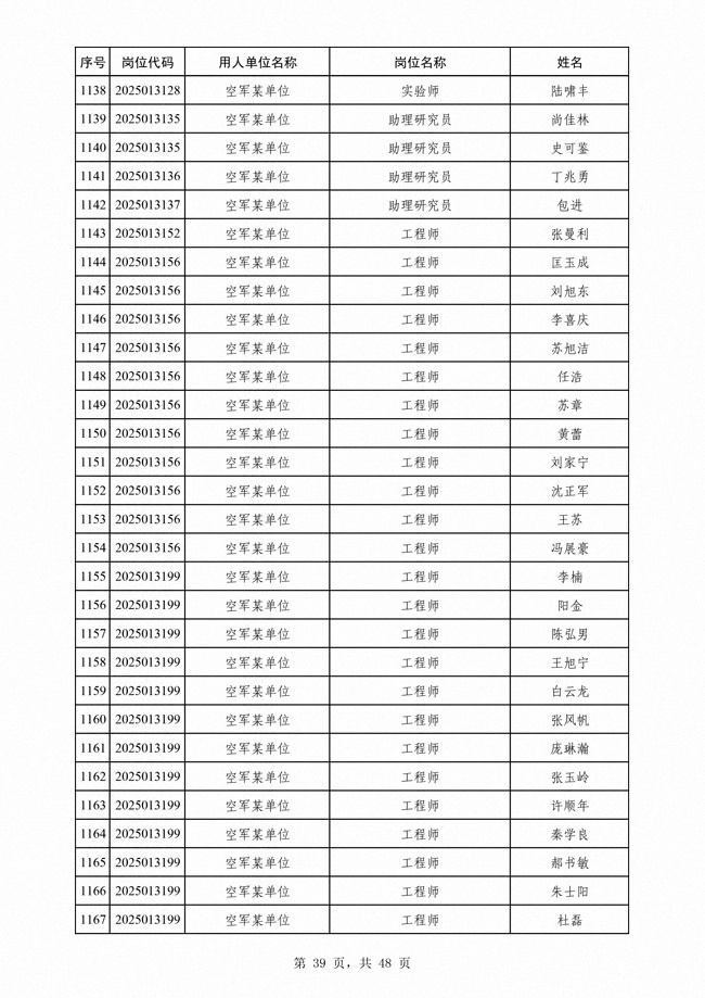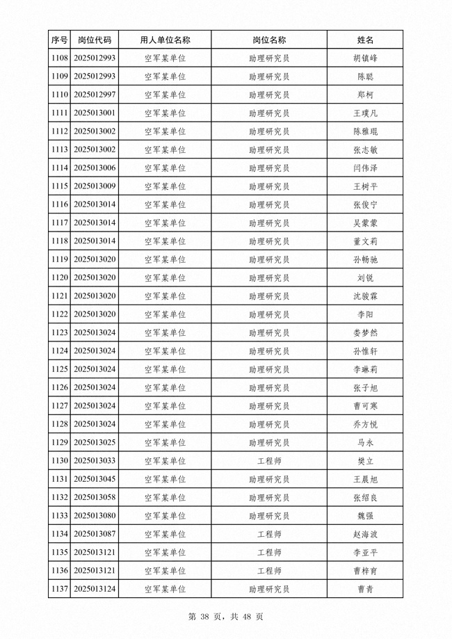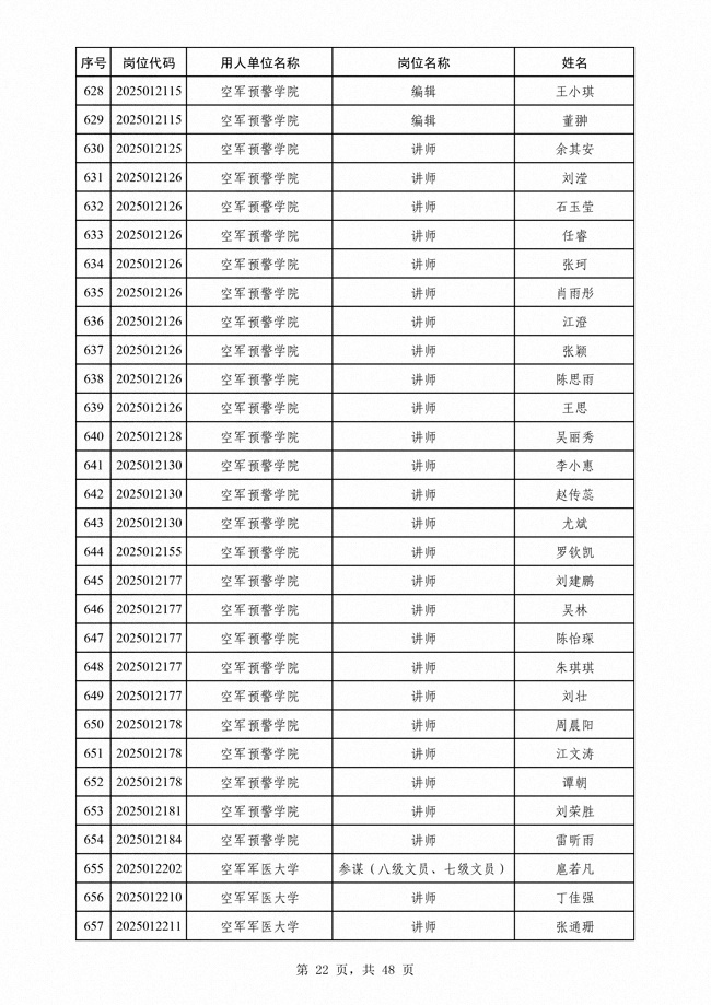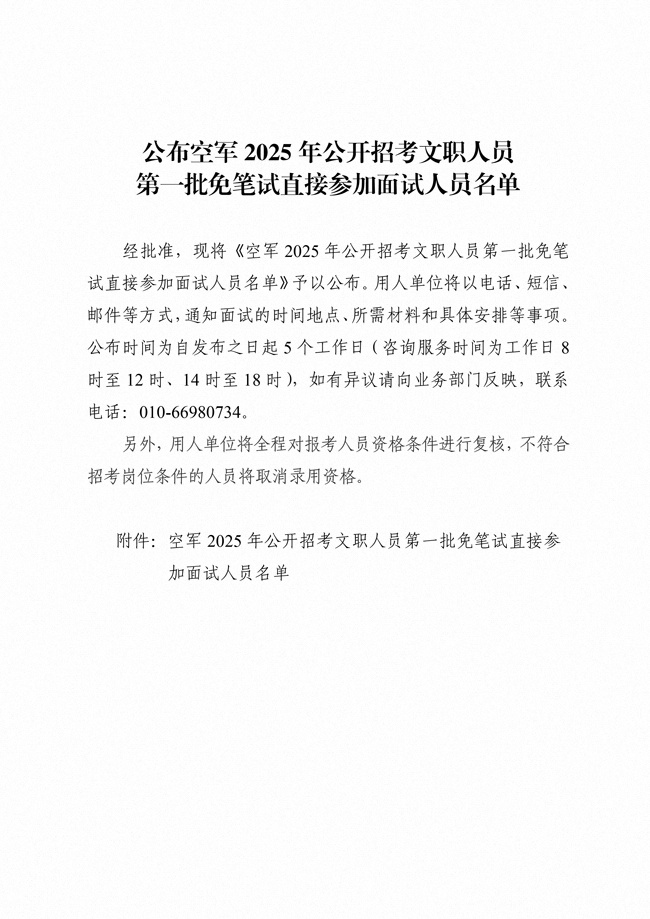 原文標(biāo)題:公布空軍2025年公開招考文職人員第一批免筆試直接參加面試人員名單