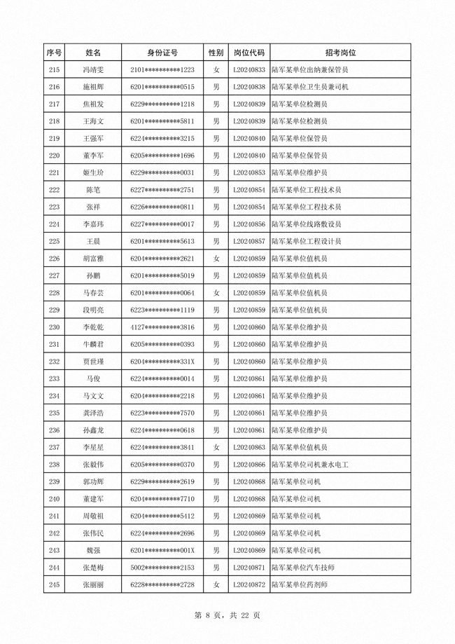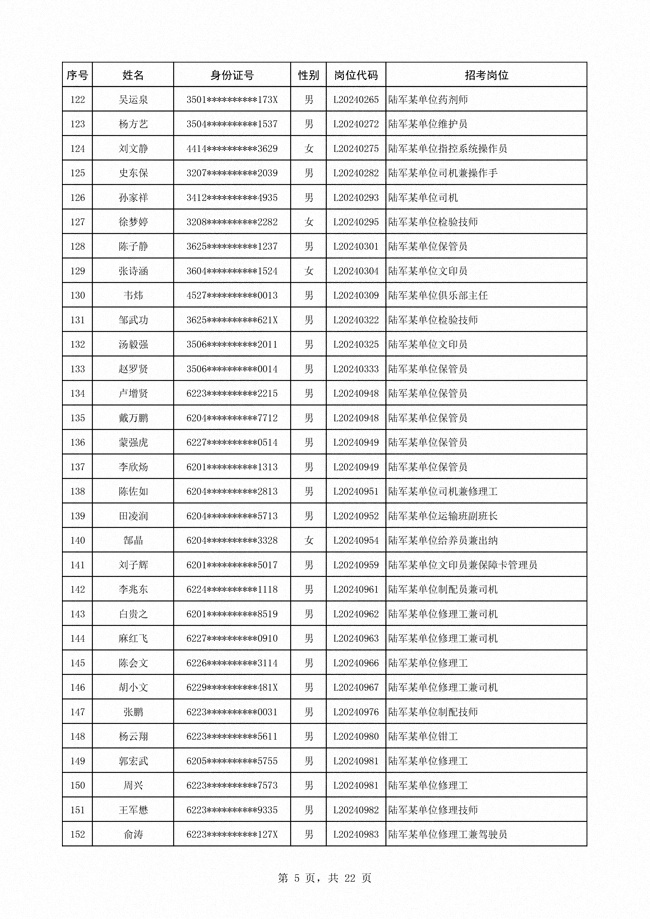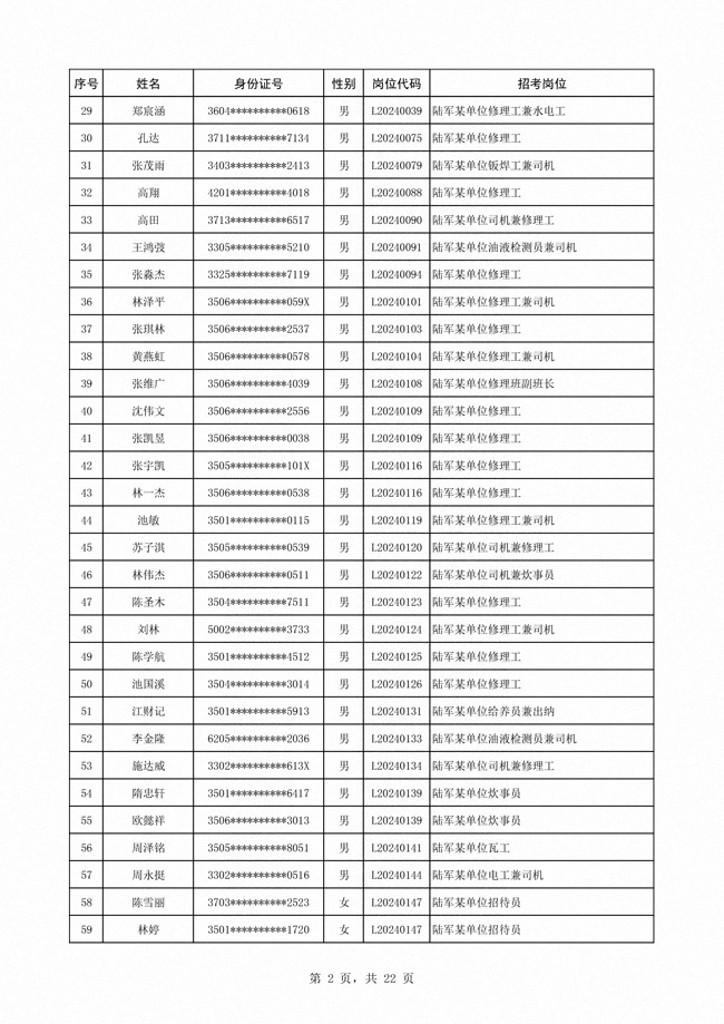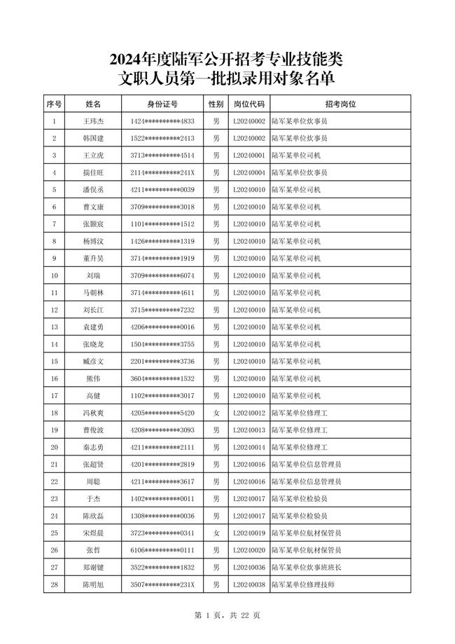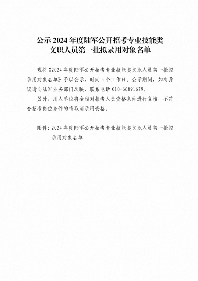 原文標題:公示2024年度陸軍公開招考專業(yè)技能類文職人員第一批擬錄用對象名單