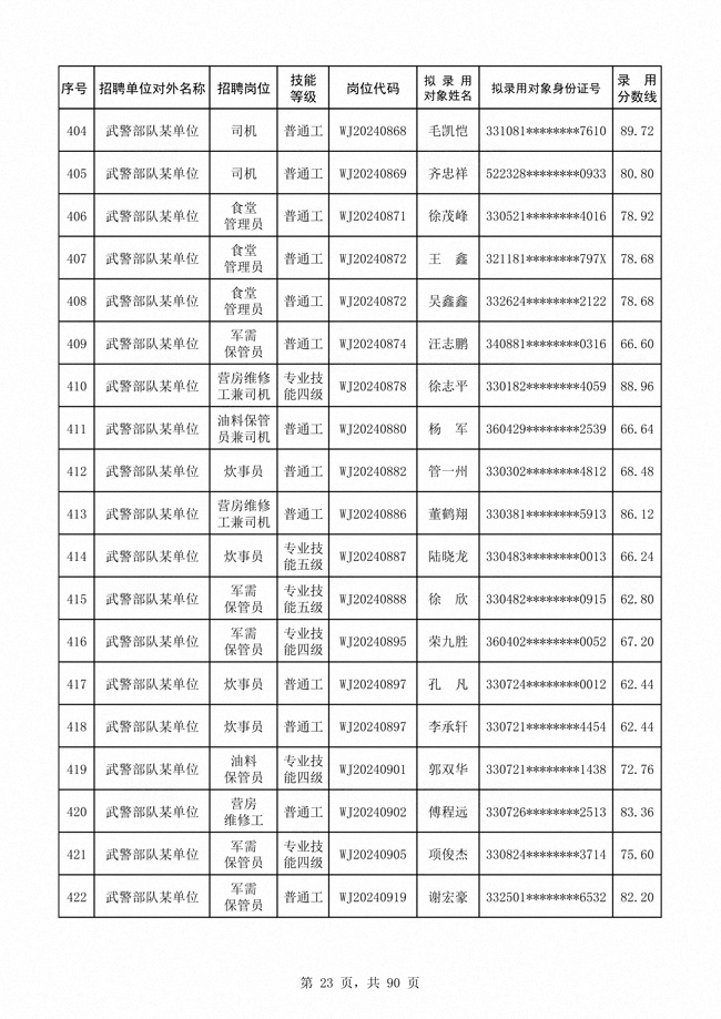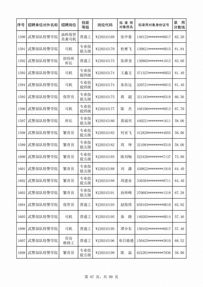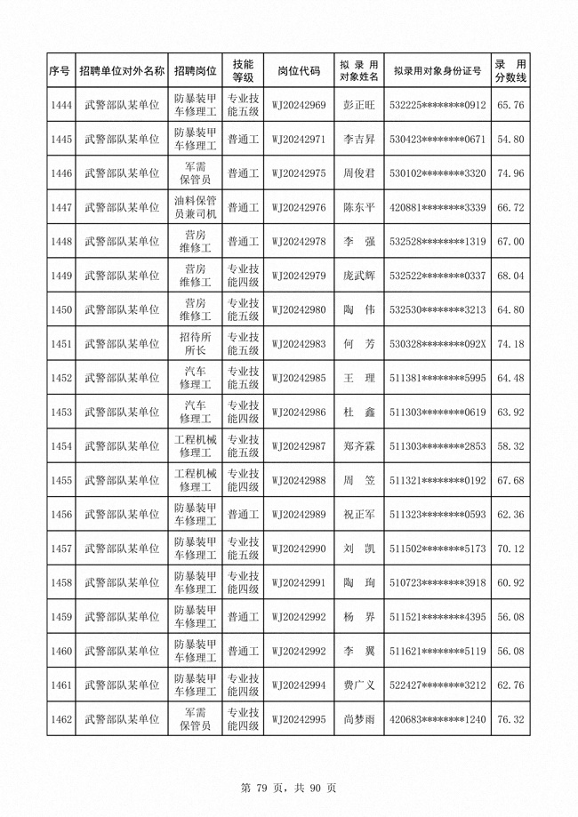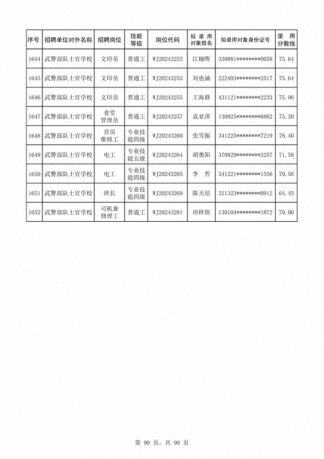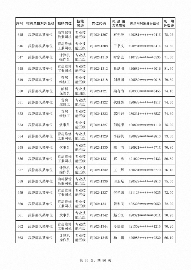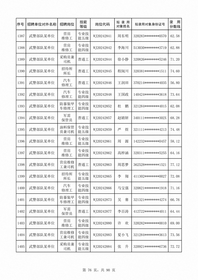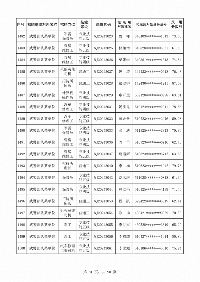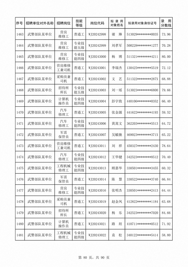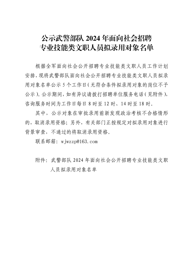 原文標(biāo)題:公示武警部隊(duì)2024年面向社會(huì)招聘專業(yè)技能類文職人員擬錄用對(duì)象名單