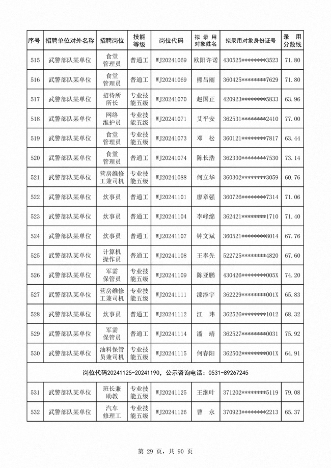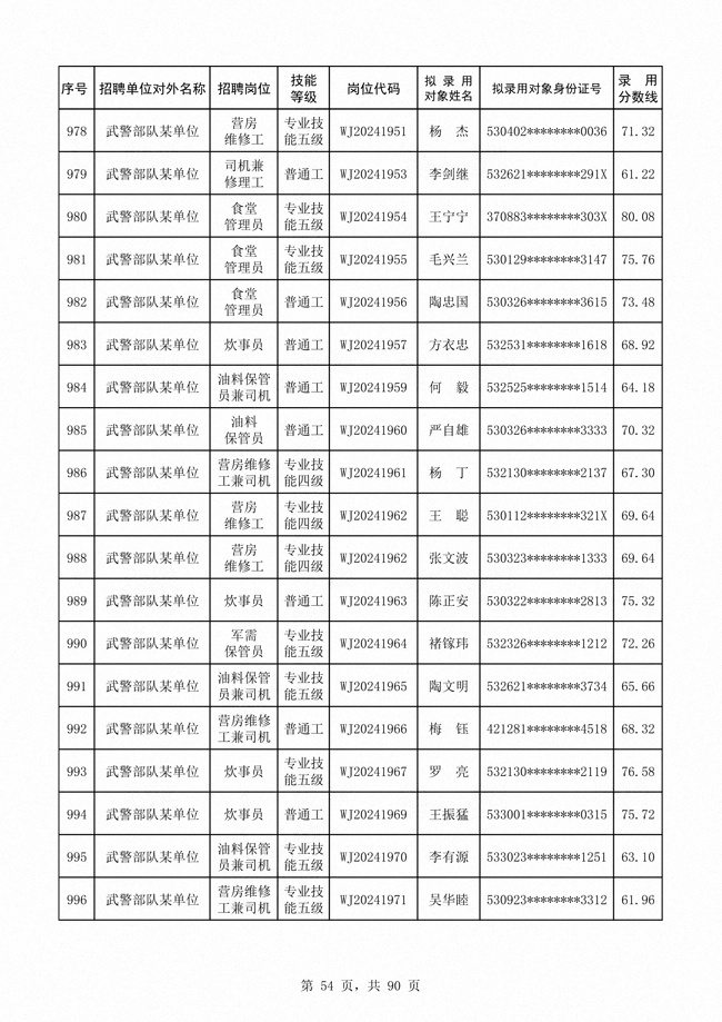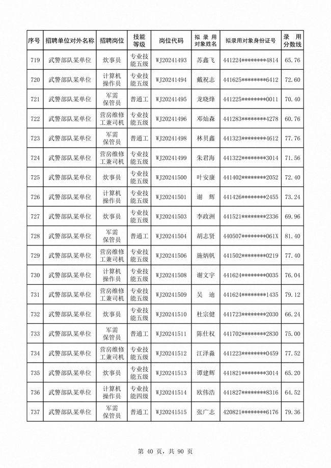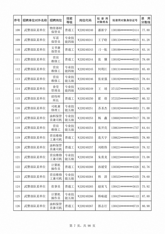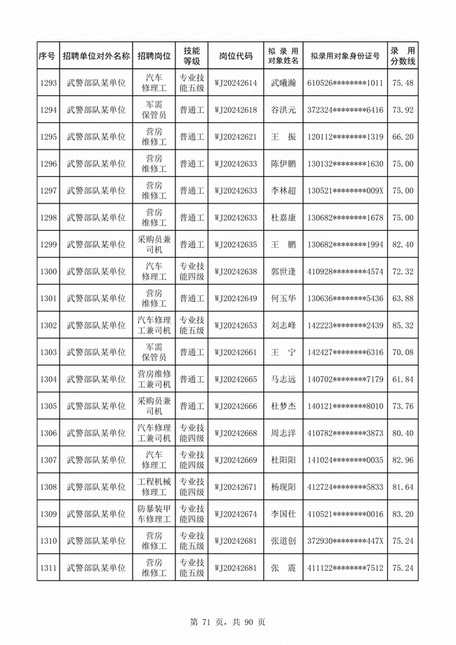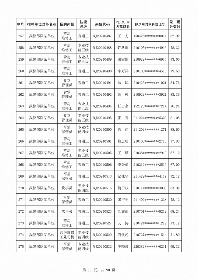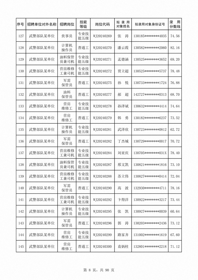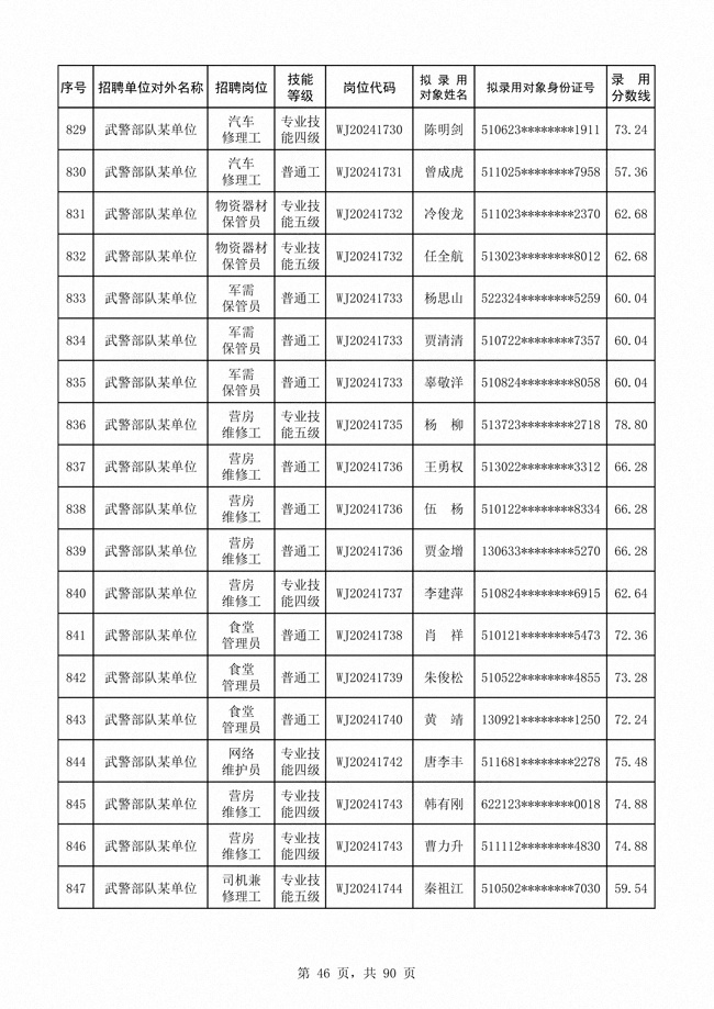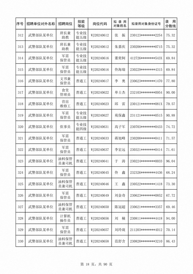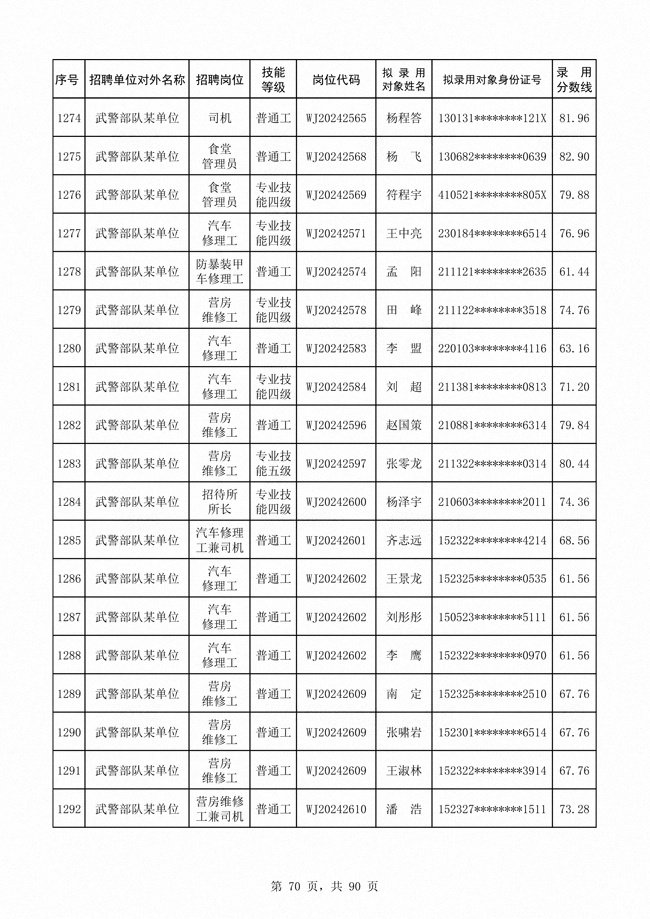 原文標(biāo)題:公示武警部隊(duì)2024年面向社會(huì)招聘專業(yè)技能類文職人員擬錄用對(duì)象名單