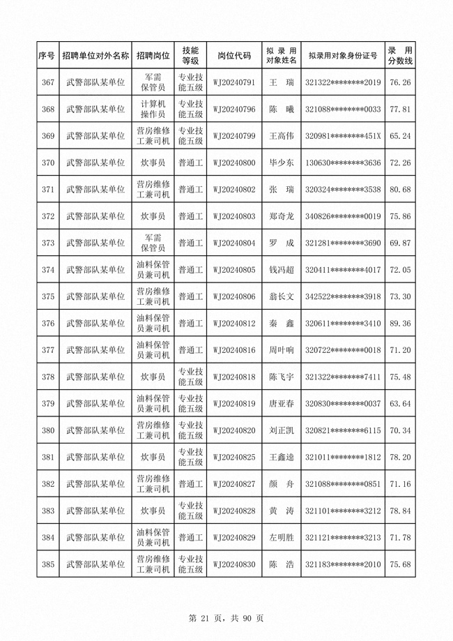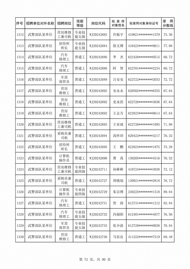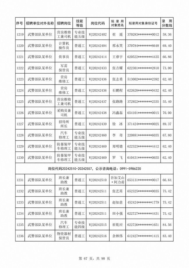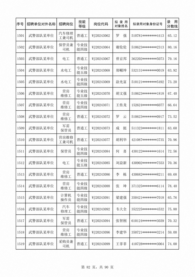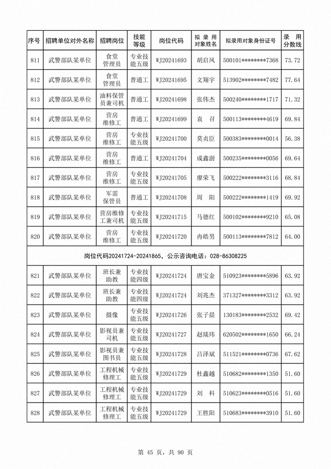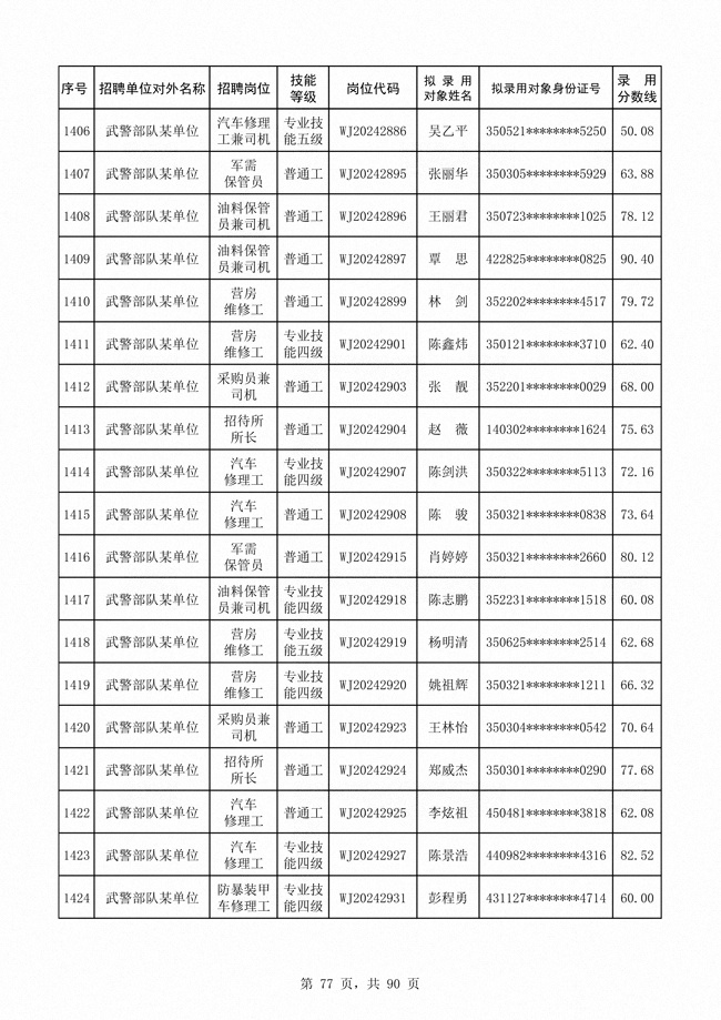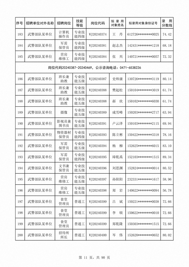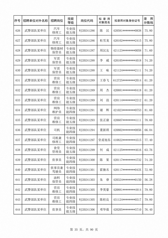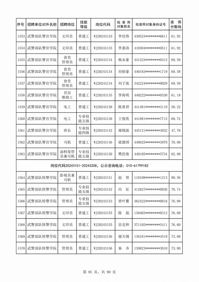 原文標(biāo)題:公示武警部隊(duì)2024年面向社會(huì)招聘專業(yè)技能類文職人員擬錄用對(duì)象名單