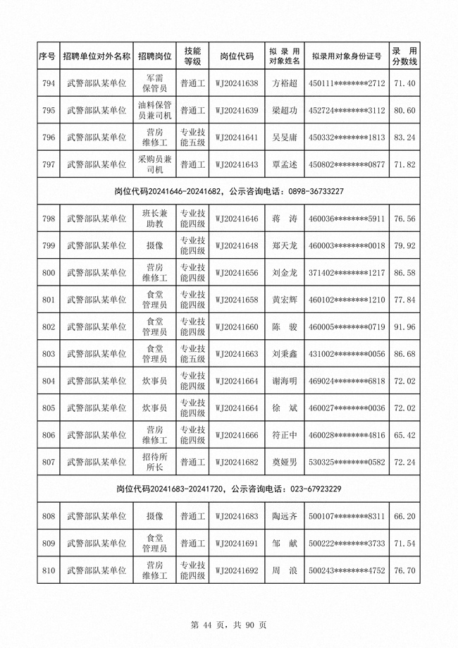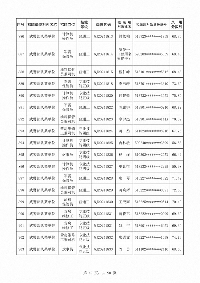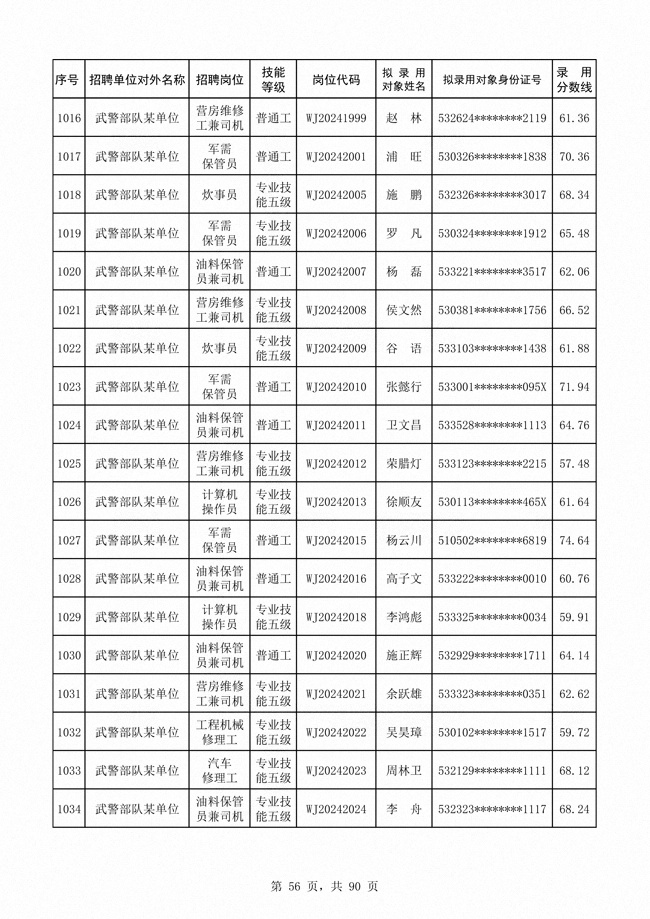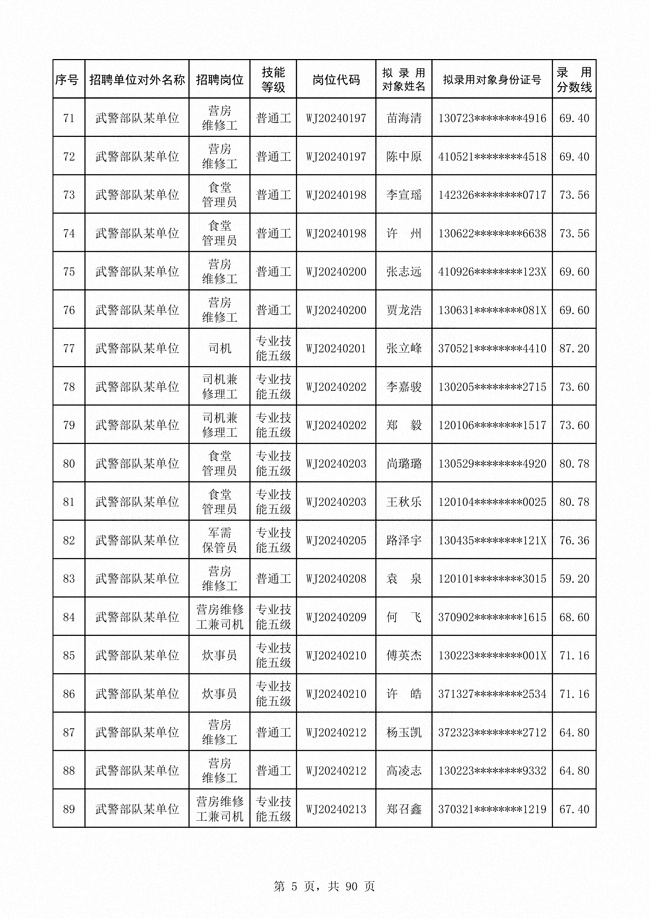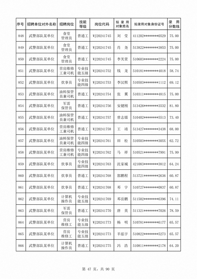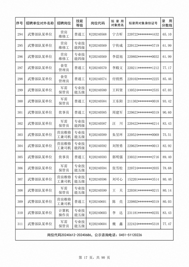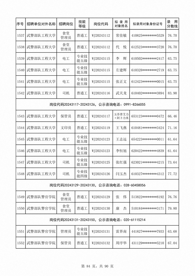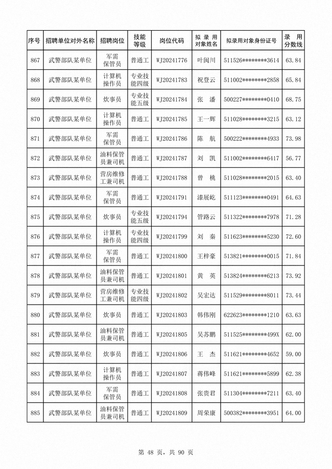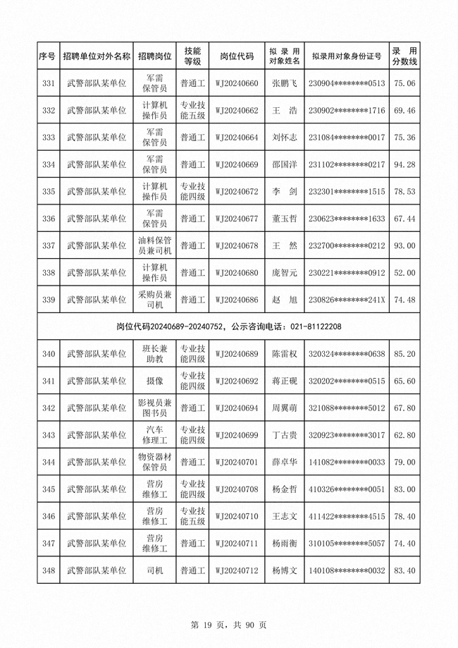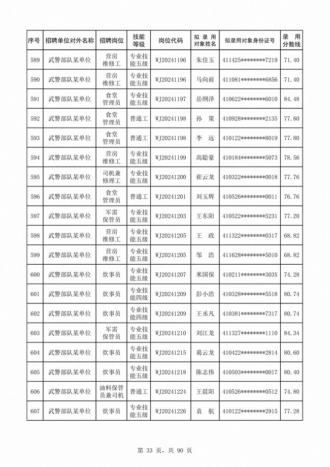 原文標(biāo)題:公示武警部隊(duì)2024年面向社會(huì)招聘專業(yè)技能類文職人員擬錄用對(duì)象名單