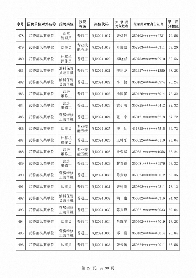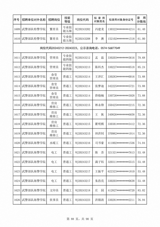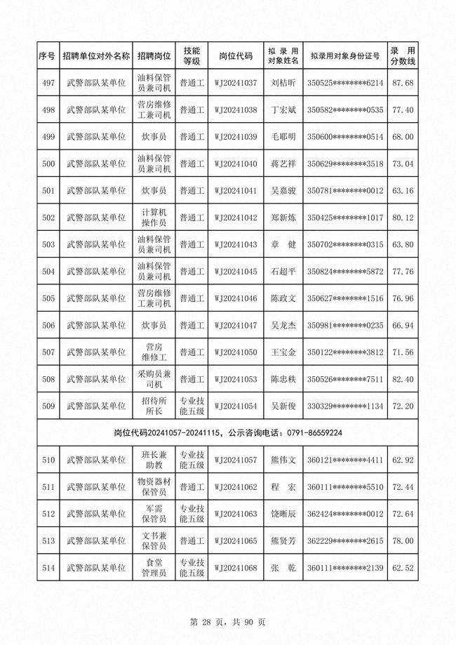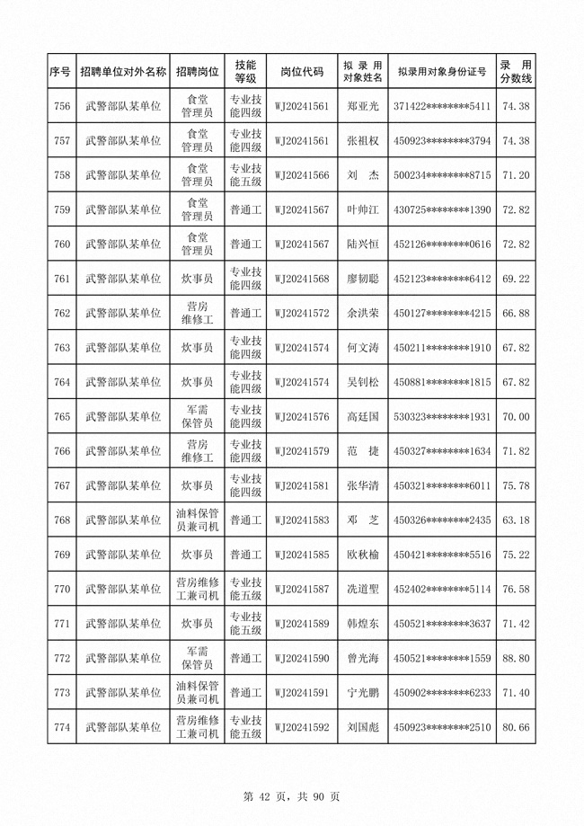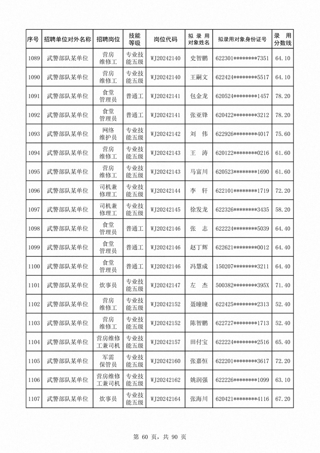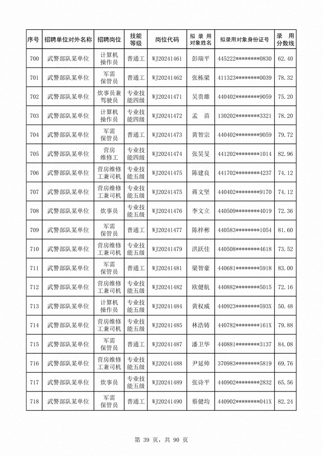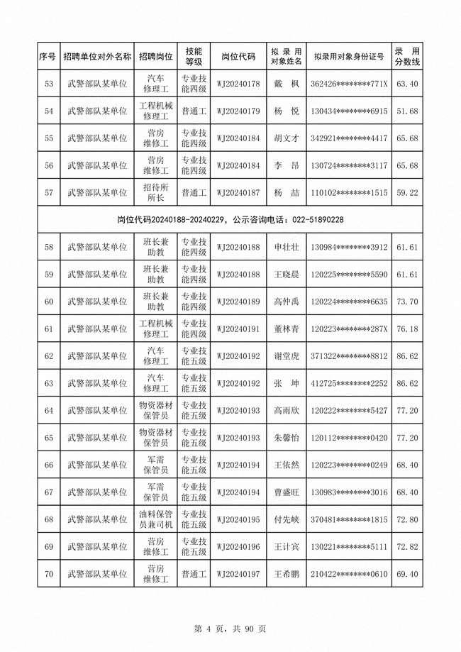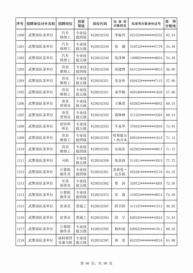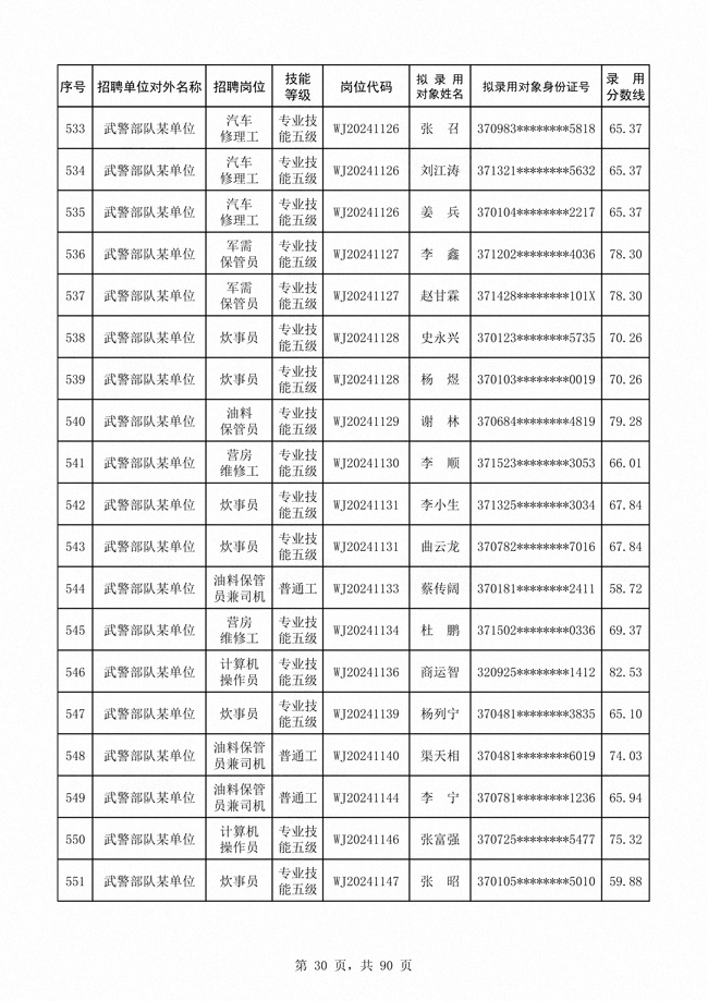 原文標(biāo)題:公示武警部隊(duì)2024年面向社會(huì)招聘專業(yè)技能類文職人員擬錄用對(duì)象名單