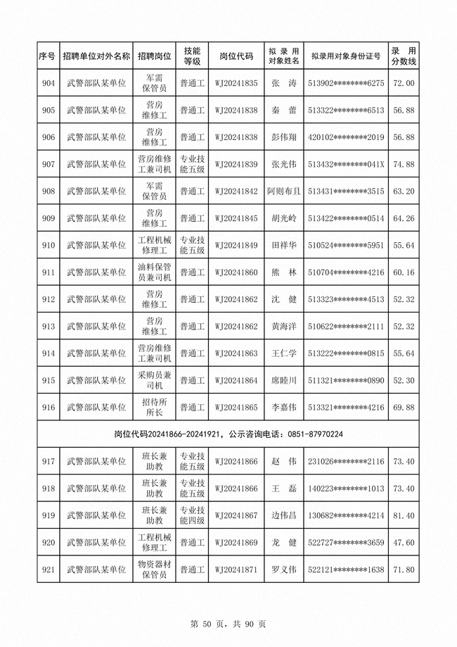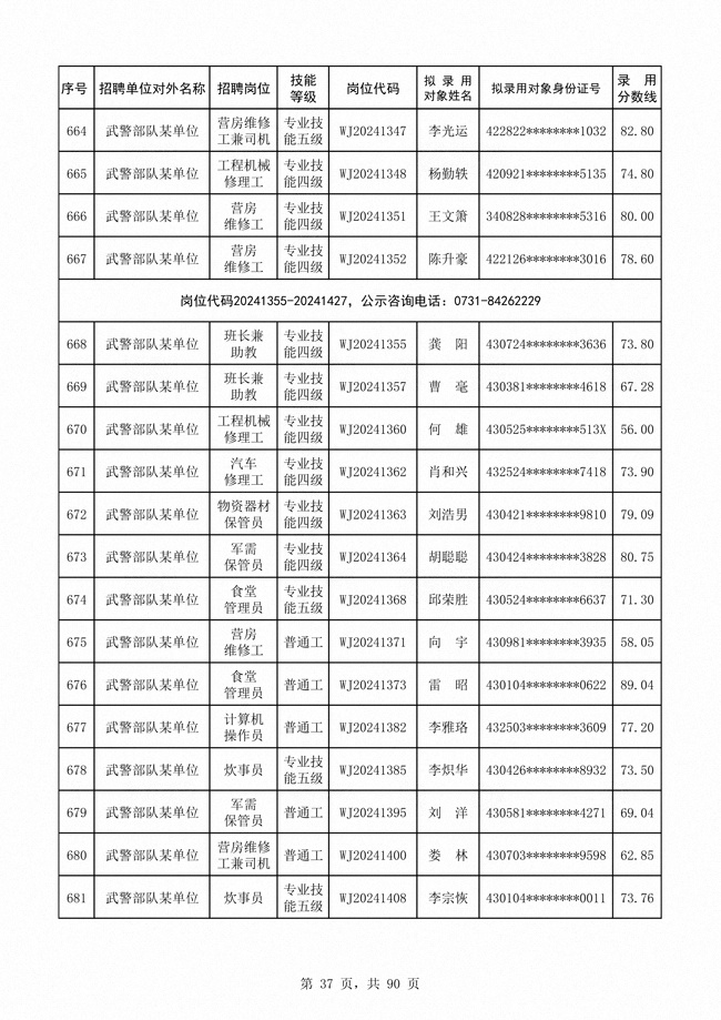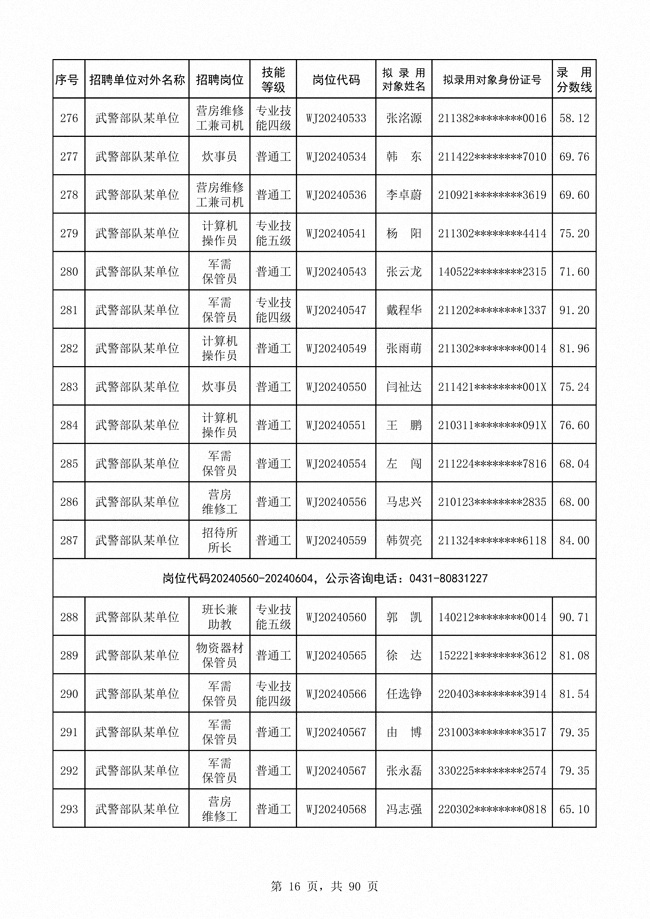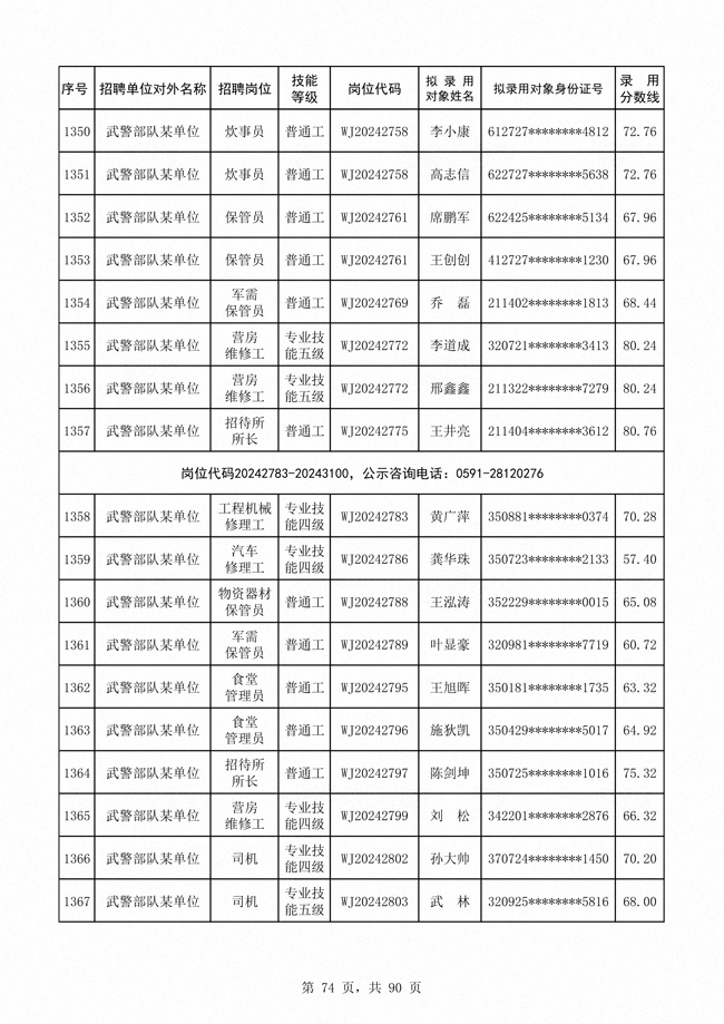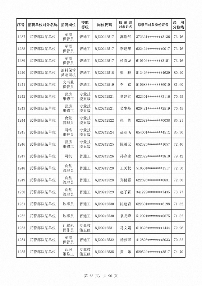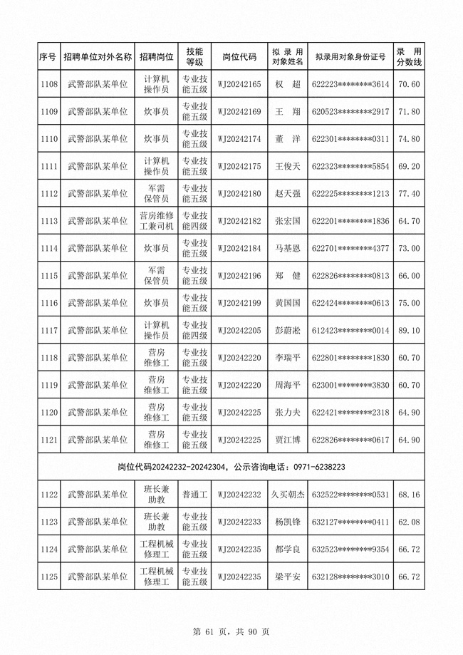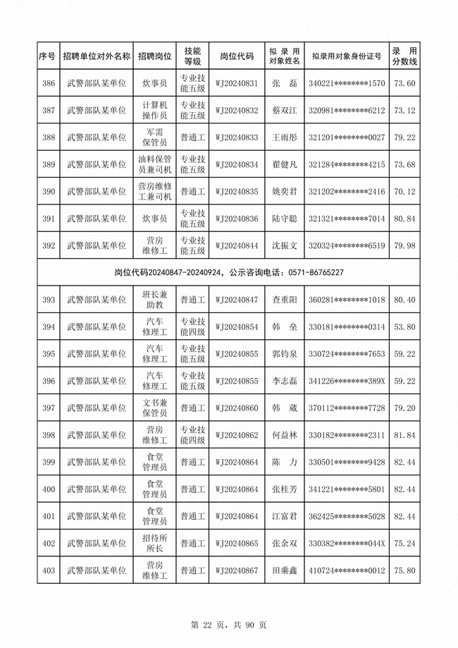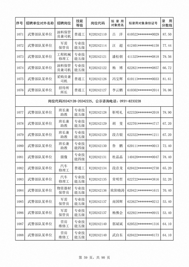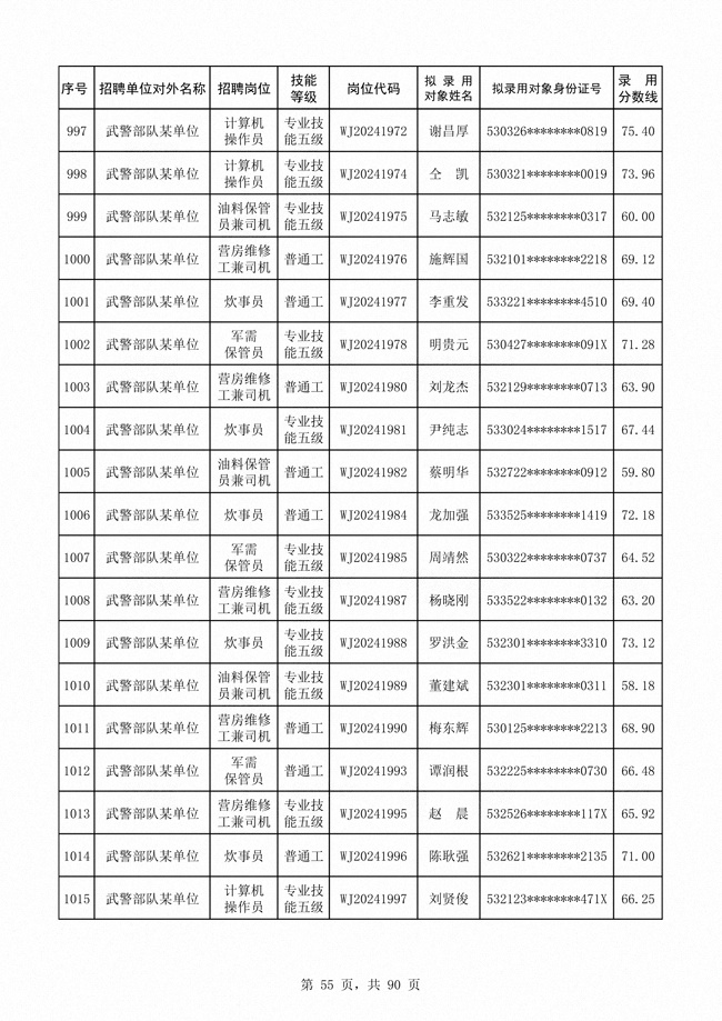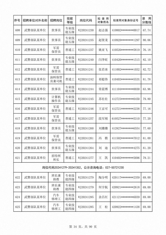 原文標(biāo)題:公示武警部隊(duì)2024年面向社會(huì)招聘專業(yè)技能類文職人員擬錄用對(duì)象名單