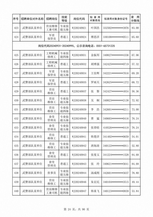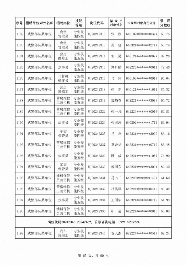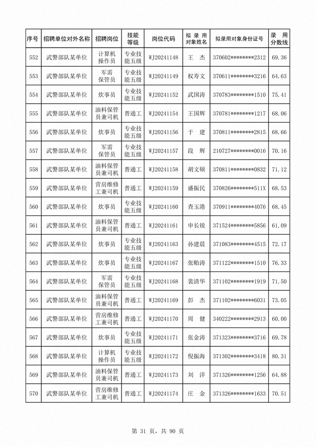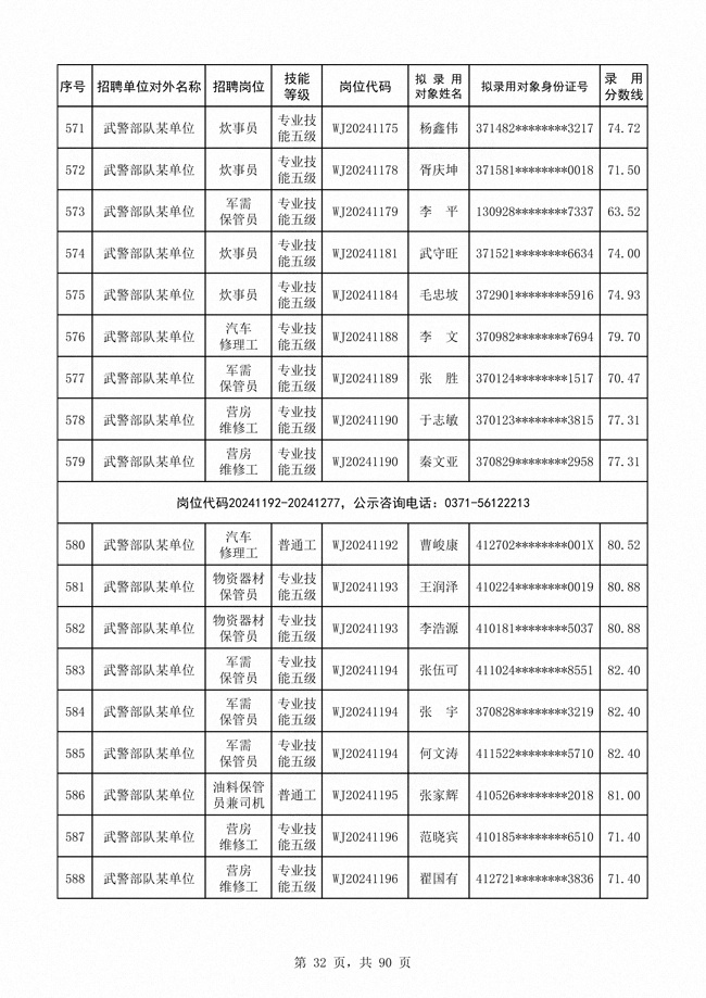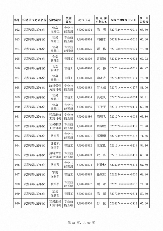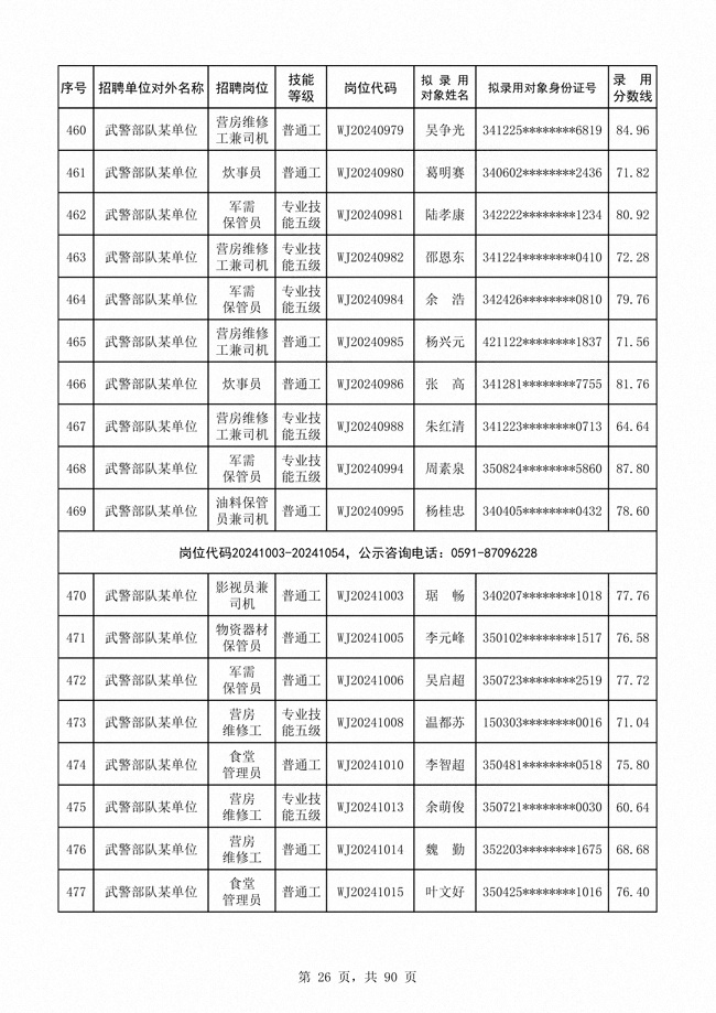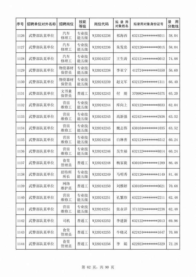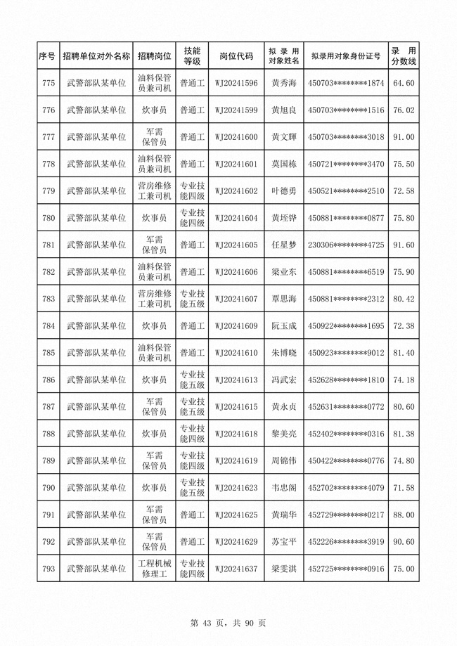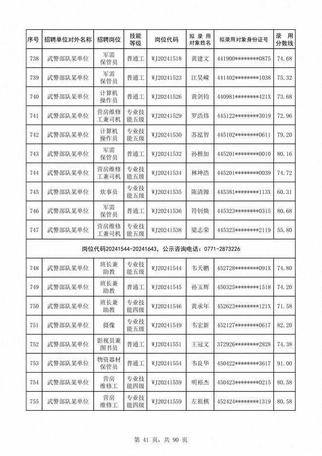 原文標(biāo)題:公示武警部隊(duì)2024年面向社會(huì)招聘專業(yè)技能類文職人員擬錄用對(duì)象名單