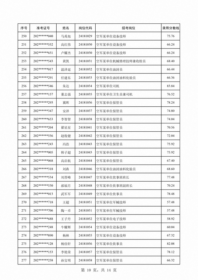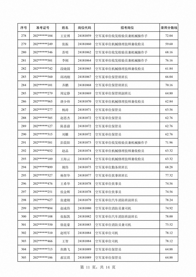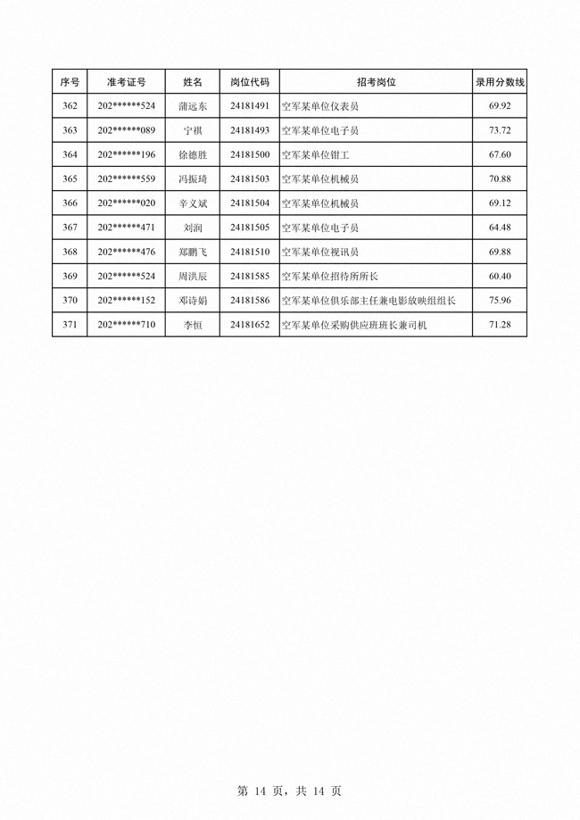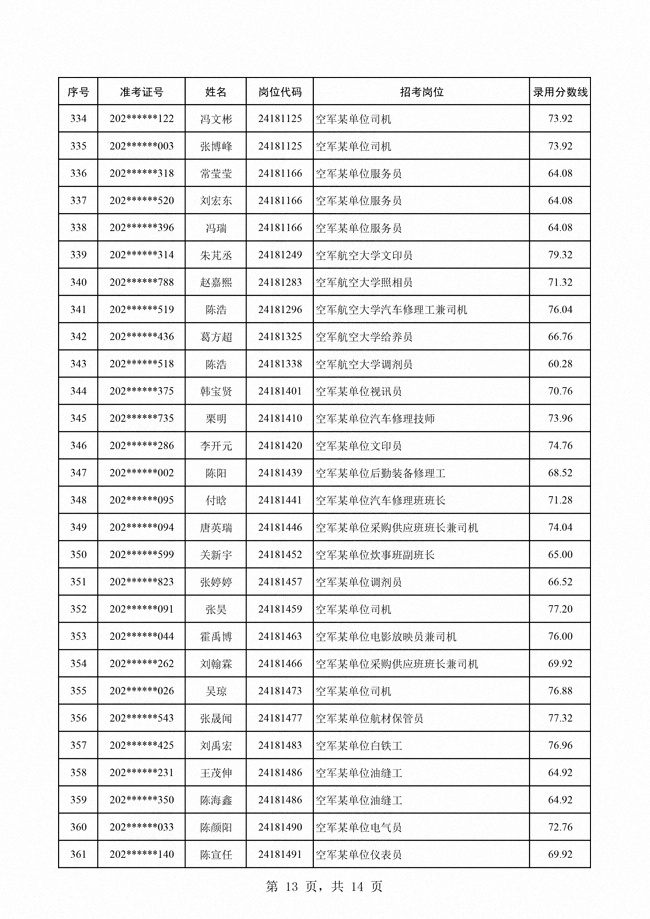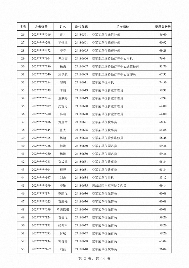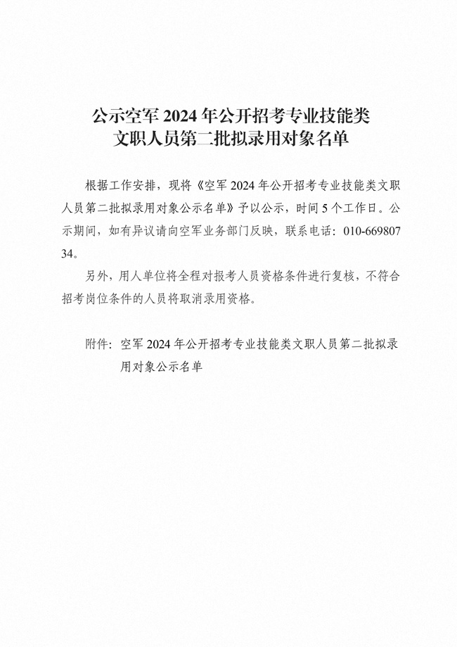 原文標題:公示空軍2024年公開招考專業(yè)技能類文職人員第二批擬錄用對象名單