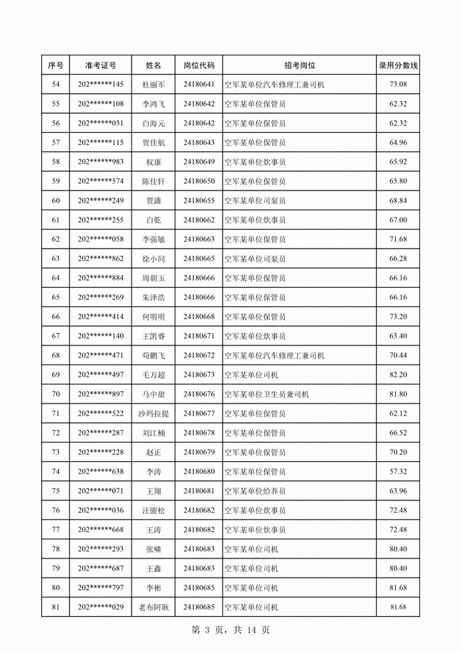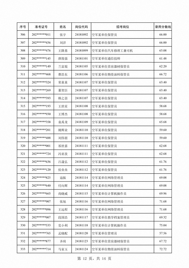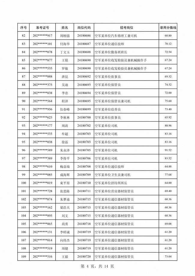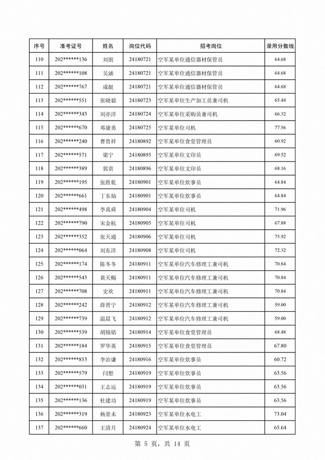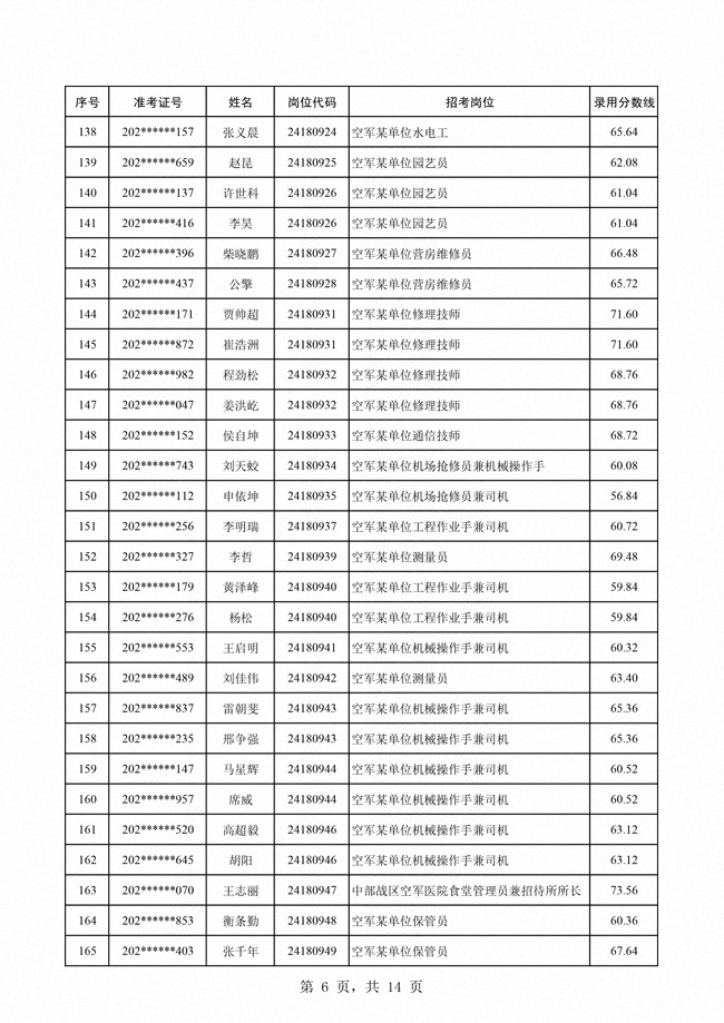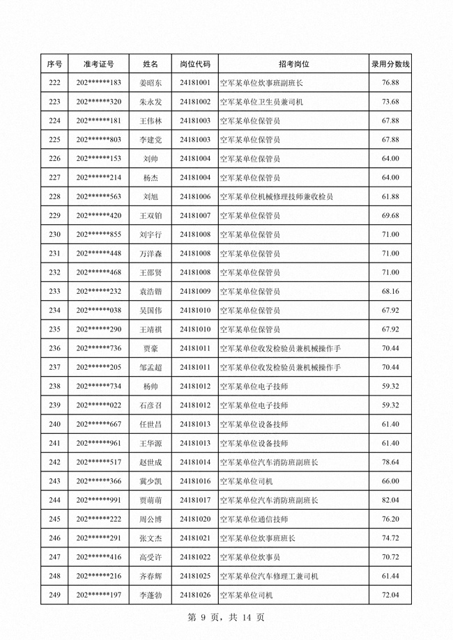 原文標題:公示空軍2024年公開招考專業(yè)技能類文職人員第二批擬錄用對象名單