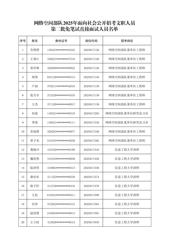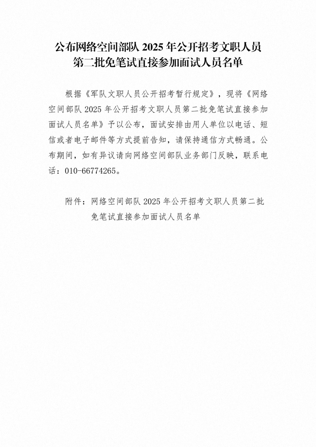 原文標(biāo)題:公布網(wǎng)絡(luò)空間部隊(duì)2025年公開(kāi)招考文職人員第二批免筆試直接參加面試人員名單
